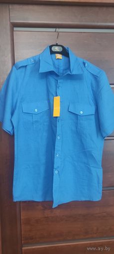 Мужская рубашка ярко синего цвета на 48-50 размер. Интересный натуральный состав: 55% Рами и 45% хлопка. Замеры: ПОгруди 61 см, длина 77 см. Новая.