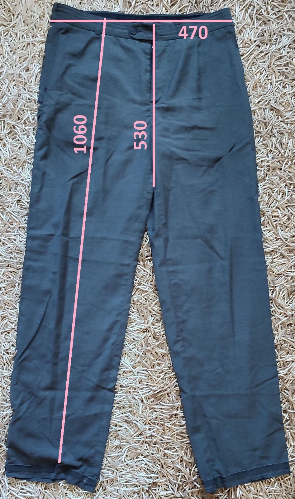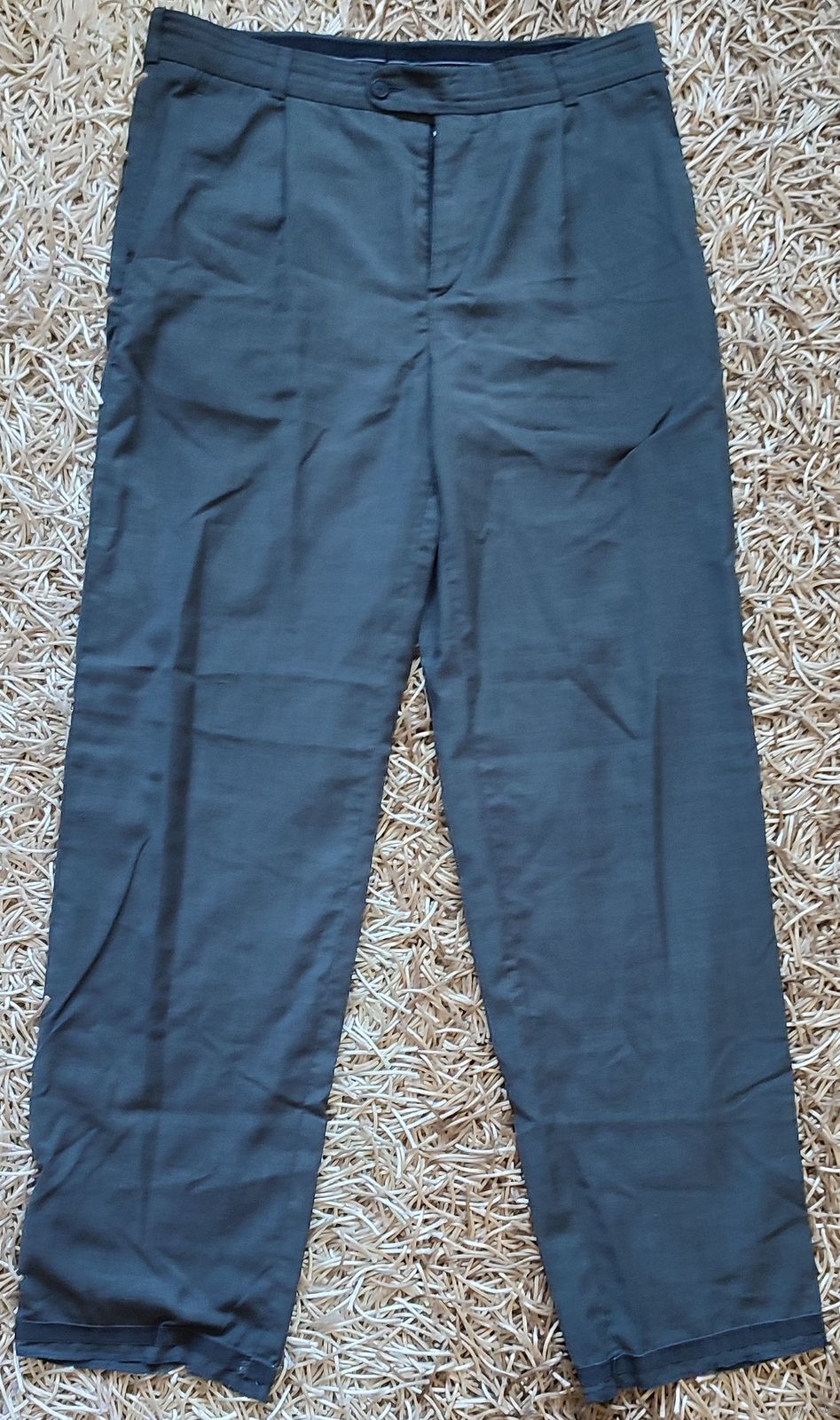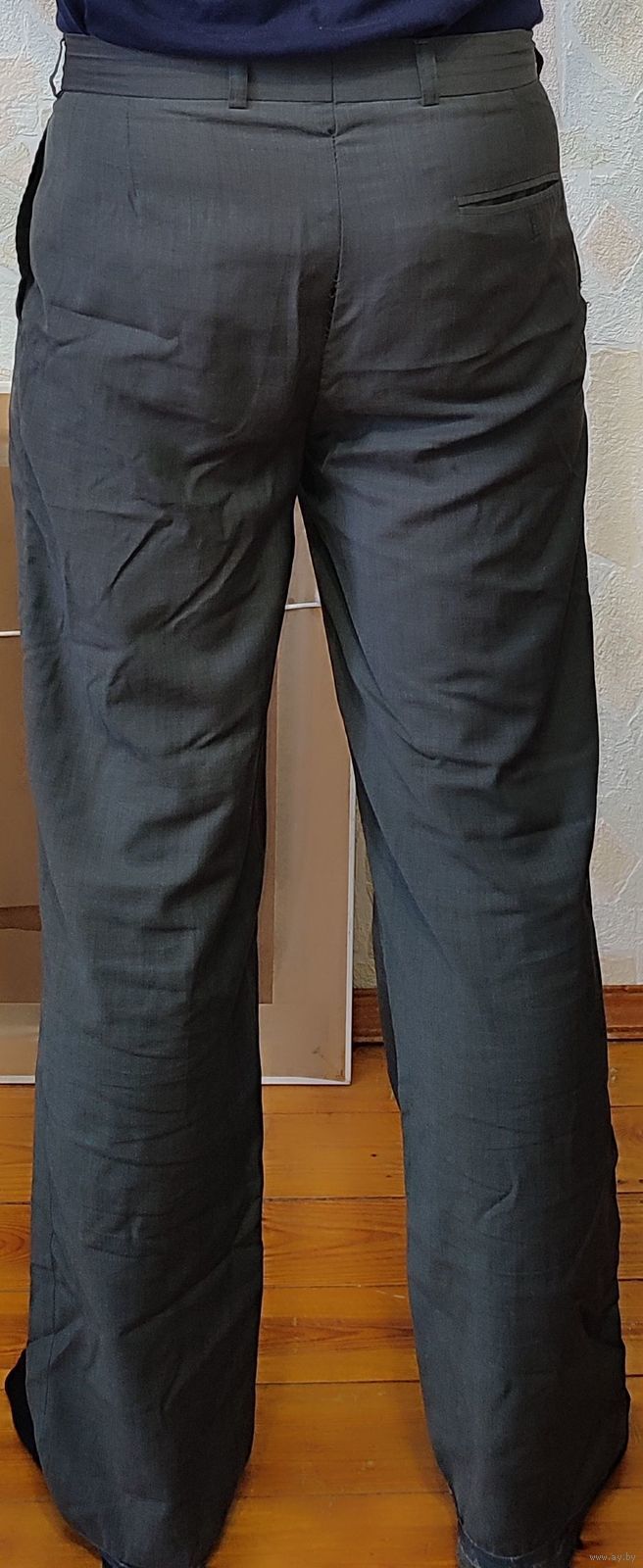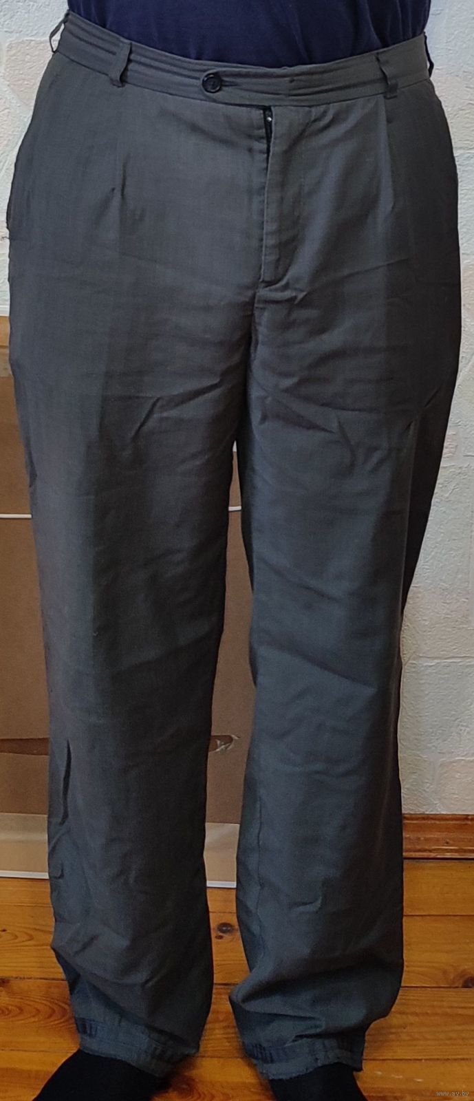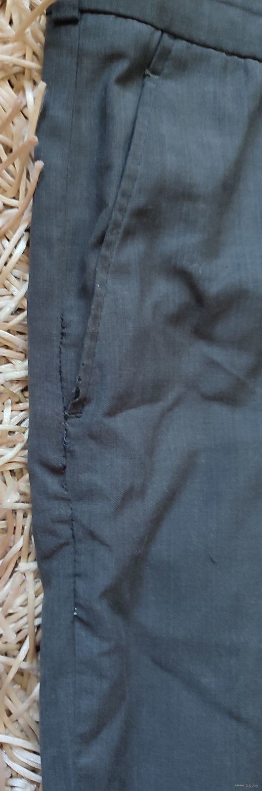 Мужские брюки тёмно-серого цвета. Материал очень лёгкий. Штаны без стрелок. Нужна подшивка: правого кармана, сзади по линии шва и манжеты штанин
