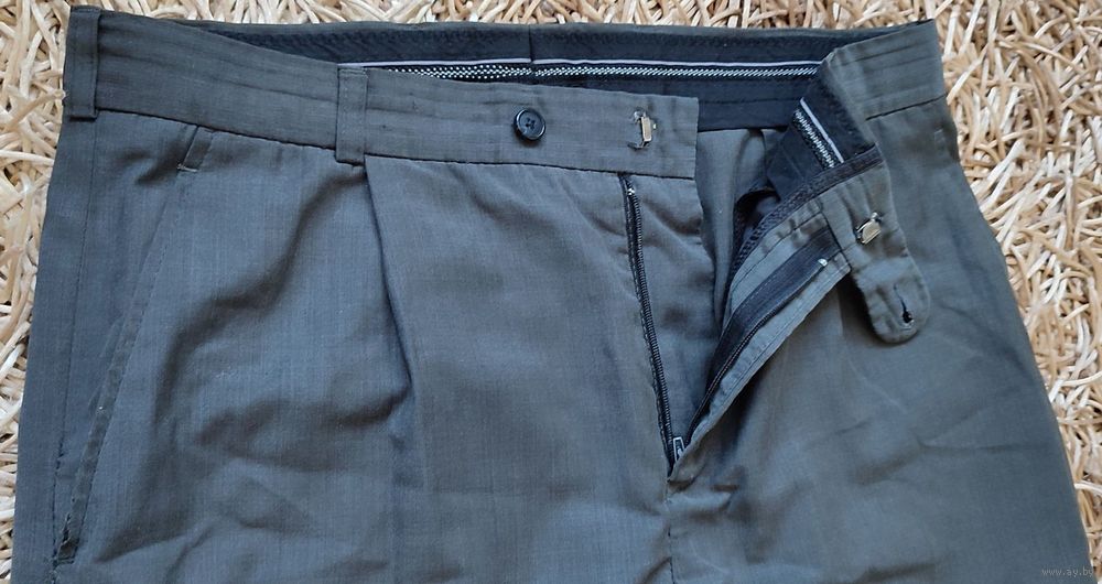 Мужские брюки тёмно-серого цвета. Материал очень лёгкий. Штаны без стрелок. Нужна подшивка: правого кармана, сзади по линии шва и манжеты штанин