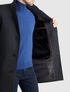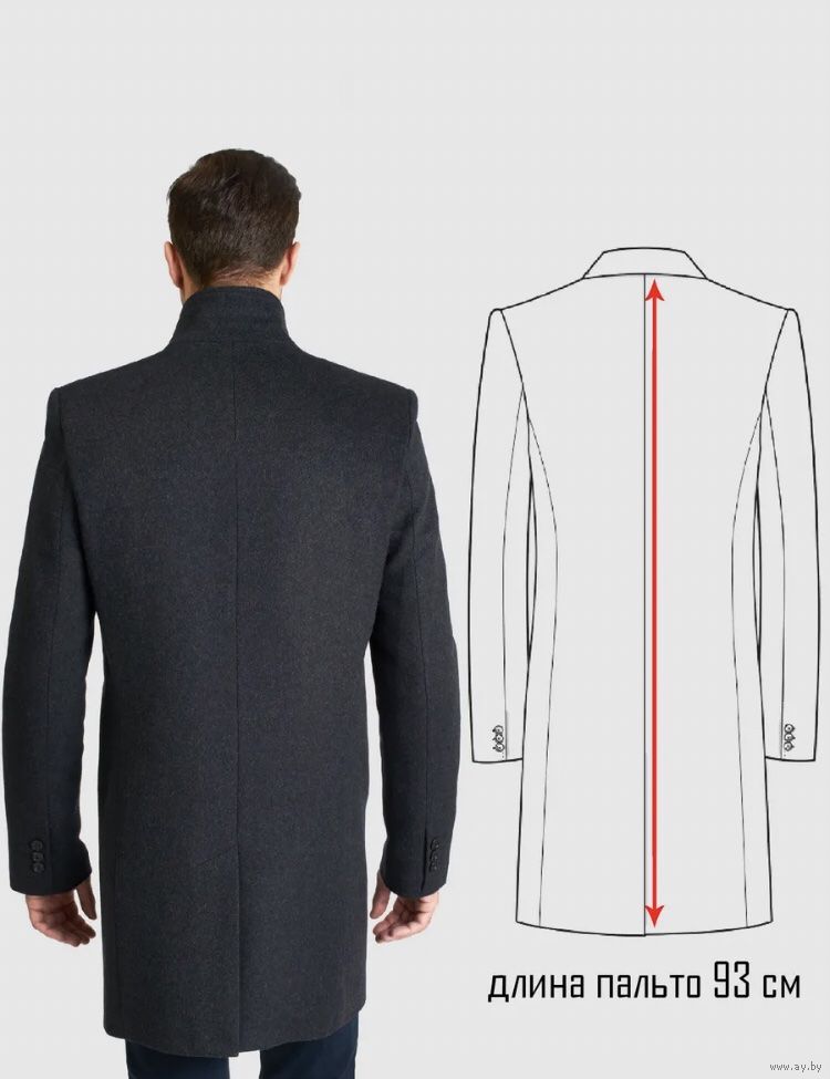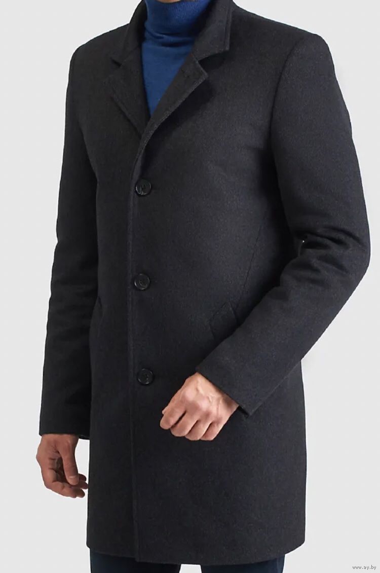 Мужское демисезонное пальто темно-серого цвета. Ткань - полушерстяной твид. Данное пальто с отстегивающейся подстежкой на молнии. Функциональный воротник: стойка и отложной. В положении стойка лацканы можно поднять вверх и застегнуть на пуговицу. Детали: два прорезных кармана, один внутренний карман, пуговицы на рукавах и шлица на спинке