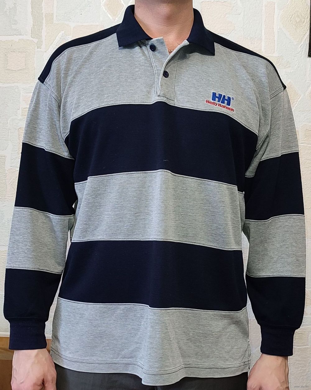 Мужской джемпер Helly Hansen с горловиной на пуговицах размера XXL тёмно-синего и светлого-серого цветов. Без видимых дефектов, только внутри по периметру шеи прохудилась (фото №8). Материал "неубиваемый", свободна при носке