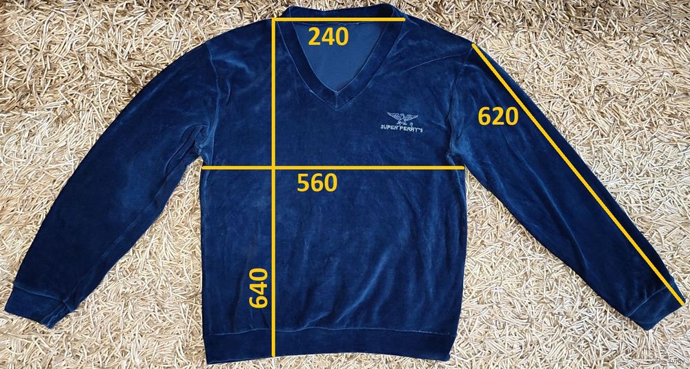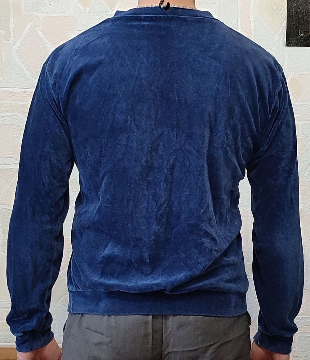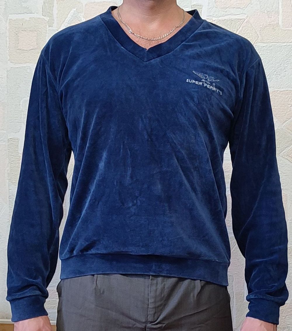 Итальянская велюровая мужская кофта "Super Perry's" размера XL тёмно-синего цвета. Была куплена в Испании в 1984-1985 годах. До сих пор довольно мягкая и приятная на ощупь