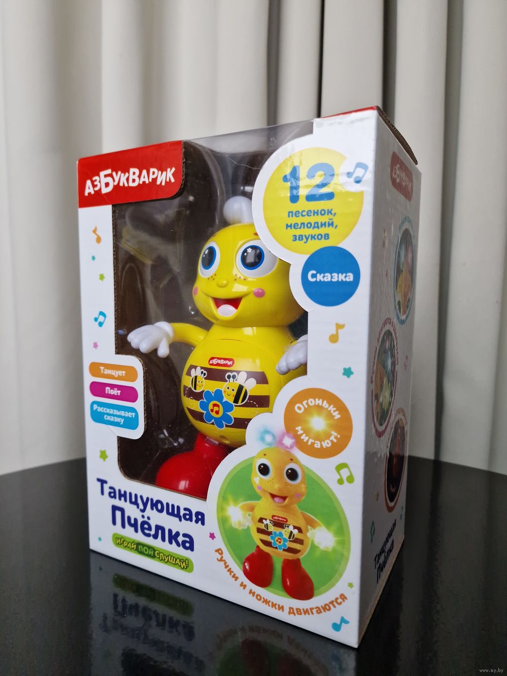| Музыкальная игрушка совершенно новая, в упаковке. Танцует и поет, мигают огонечки. Хорошая озвучка. Фабрика Азбукварик . | |