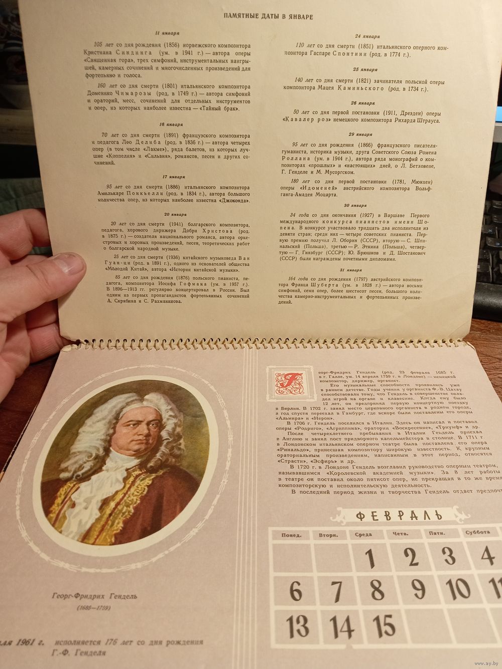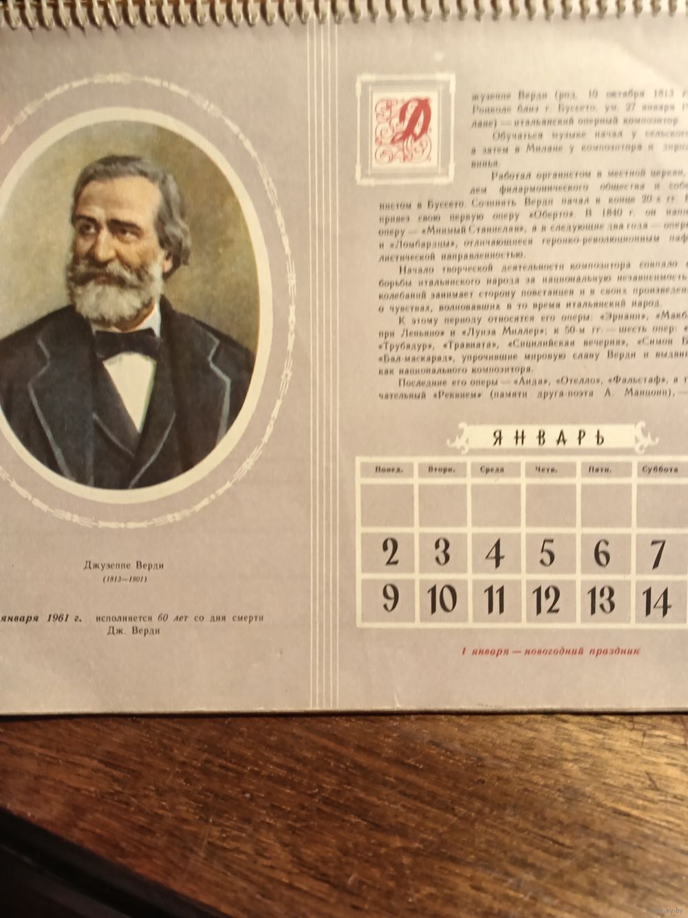 Музыкальный календарь на 1961 год. Зарубежные композиторы Автор-составитель И.В. Голубовский 1960г."Музыкальный календарь на 1961 год.