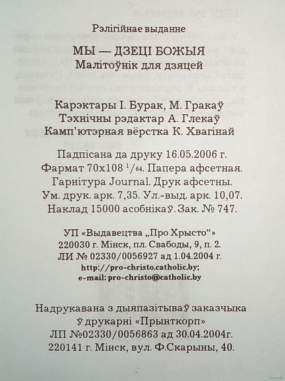 | Издательство | Мінск ПроХрысто |
