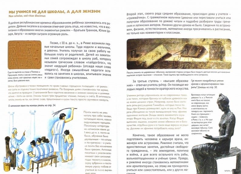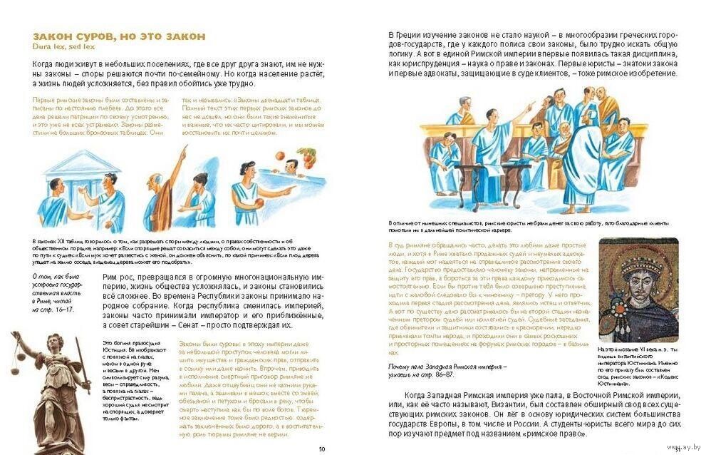 Когда ты идёшь в школу и учишься письму и счёту, когда ходишь по улицам современного города, когда пользуешься водопроводом и даже когда употребляешь слова "компьютер" или "монета", ты пользуешься наследием древнеримской цивилизации. Эта книга расскажет тебе, как жили древние римляне, что они ели, в какие игры играли, как развлекались, что строили, что выращивали на полях и в садах, как учили, лечили, как управлял государством и принимали законы. Некоторые из римских привычек покажутся тебе совершенно такими же, к сейчас, другие - странными и удивительными. А ещё перед тобой пройдёт целая череда героев римской истории от легендарных царей, великих ораторов и полководцев до императоров, среди которых попадались и велики правители, и великие безумцы. Древний Рим до сих пор живёт рядом с нами. Не веришь? Открой эту книжку и убедись!
