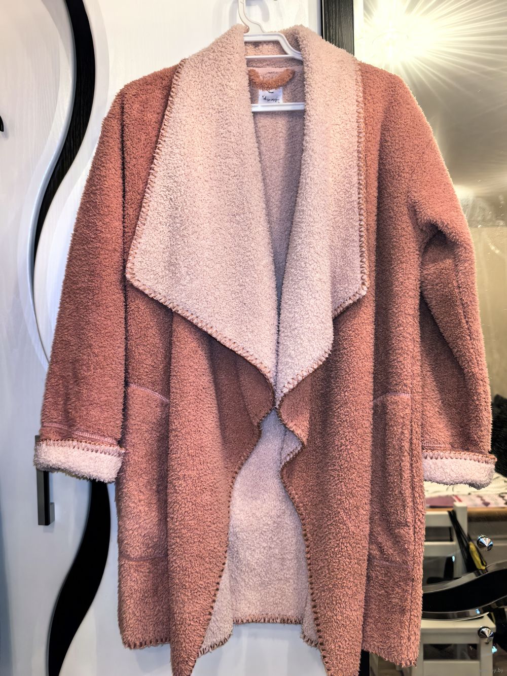 Очень лёгкое, мягкое, тёплое и уютное одеяние, универсально для дома и улицы, с карманами. Оденешь и не хочется больше из него вылазить! Красивый пыльно-розовый цвет. Состояние идеальное!