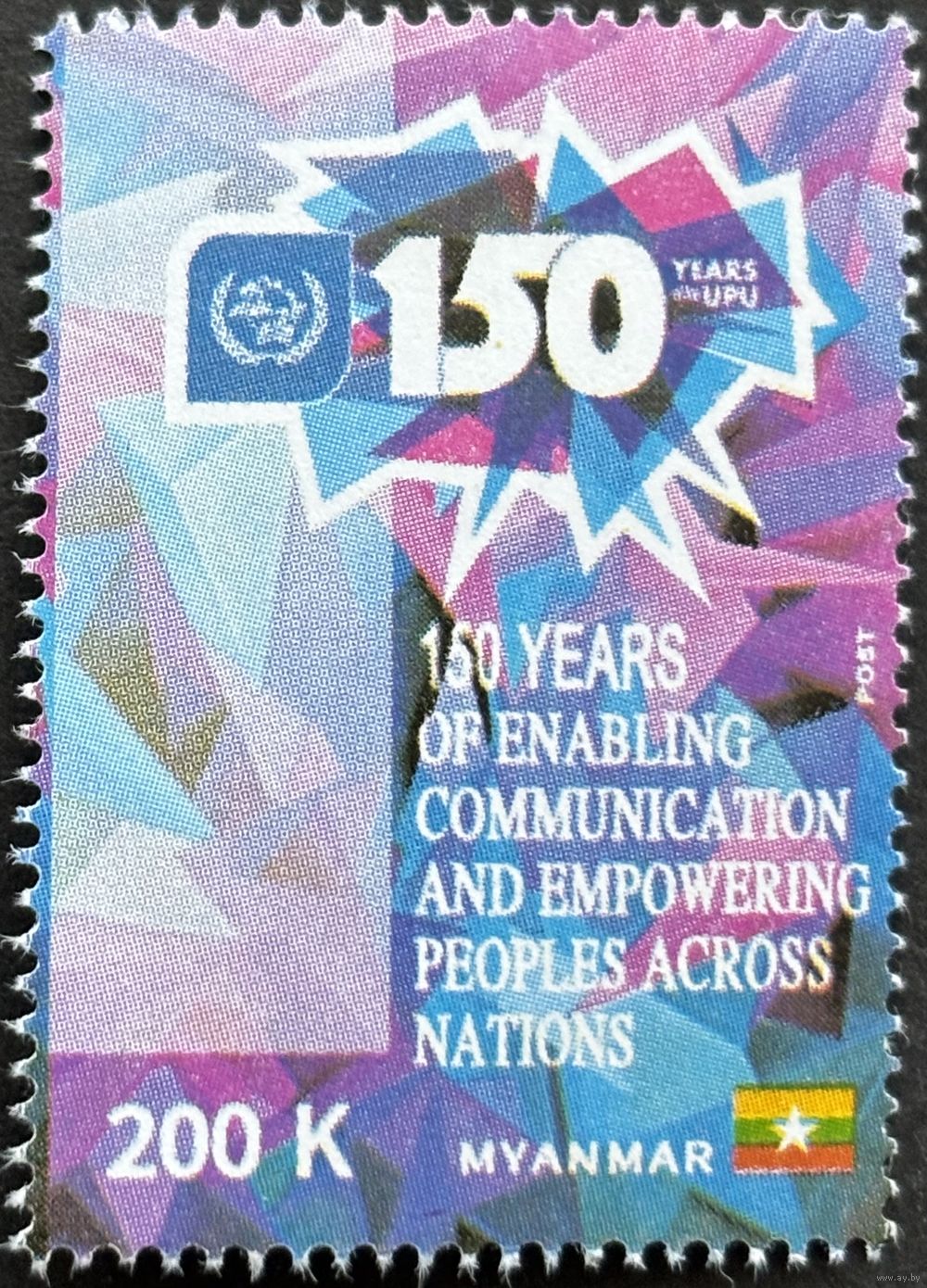 Мьянма 2024 История почты. 150 лет ВПС. UPU. Совместный выпуск.