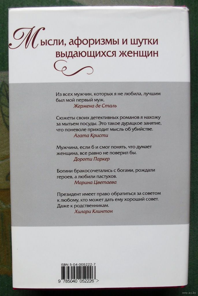 е собраны высказывания нескольких сотен женщин - писательниц, актрис, политиков, ученых. О чем? О жизни, о мире, о мужчинах и о себе.