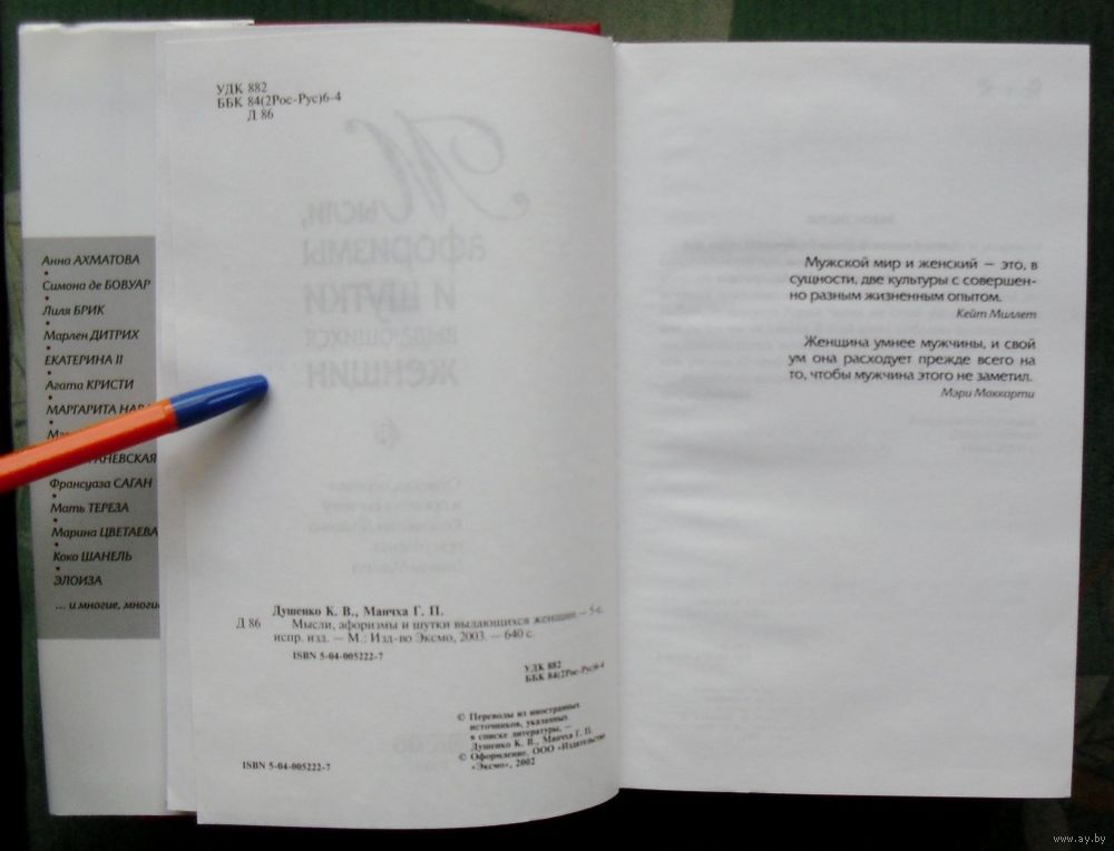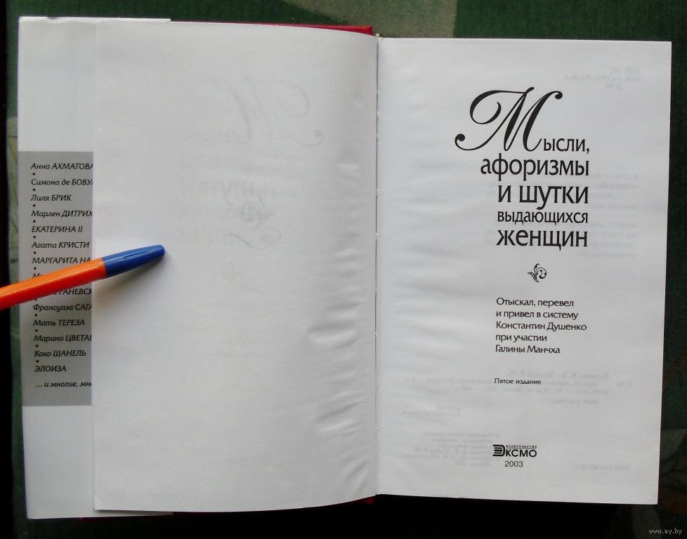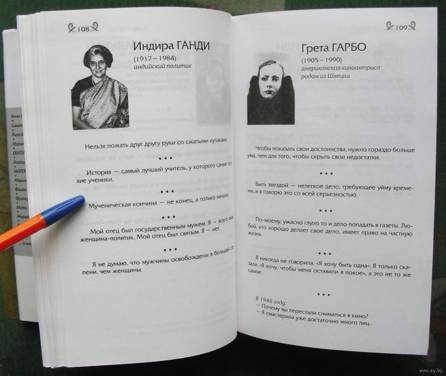 Мысли, афоризмы и шутки: Анны Ахматовой, Симоны де Бовуар, Лили Брик, Марлен Дитрих, Екатерины II, Агаты Кристи, Маргариты Наваррской, Мэрлин Монро, Фаины Раневской, Франсуазы Саган, Матери Терезы, Марины Цветаевой, Коко Шанель, Элоизы.