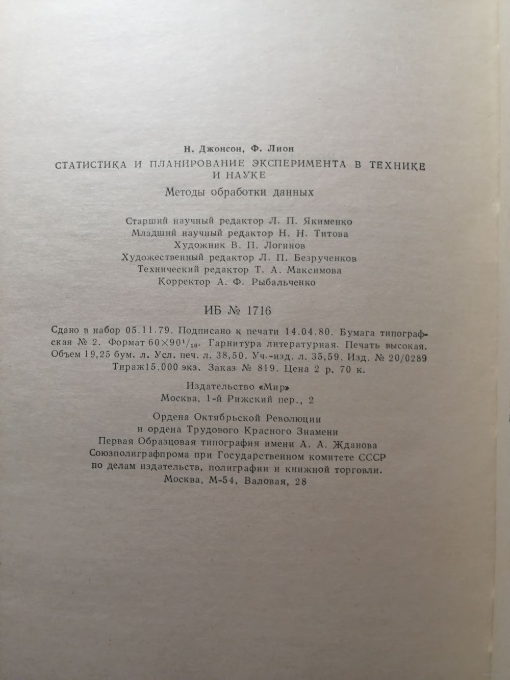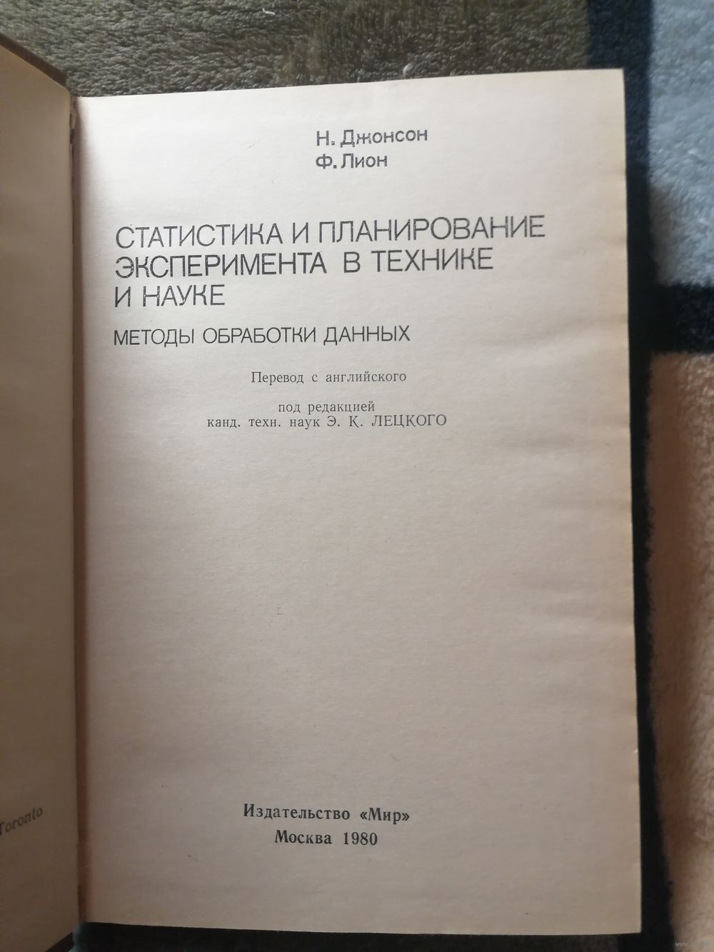 Книга предназначена для специалистов, желающих применять методы математической статистики и теории планирования эксперимента, и представляет несомненный интерес для студентов вузов и аспирантов естественно научных и технических специальностей.