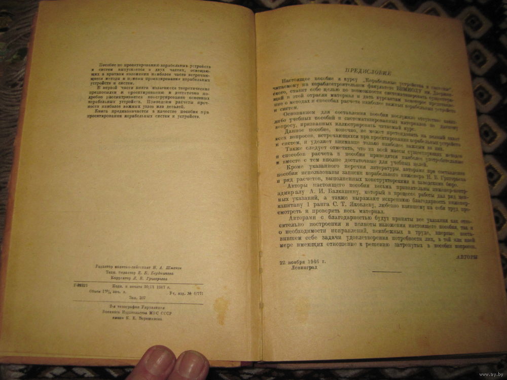 Н.И. Евдосеев, В.С. Городничев. Пособие по проектированию корабельных устройств и систем. Часть 1. Проектирование корабельных устройств. 1947 г.