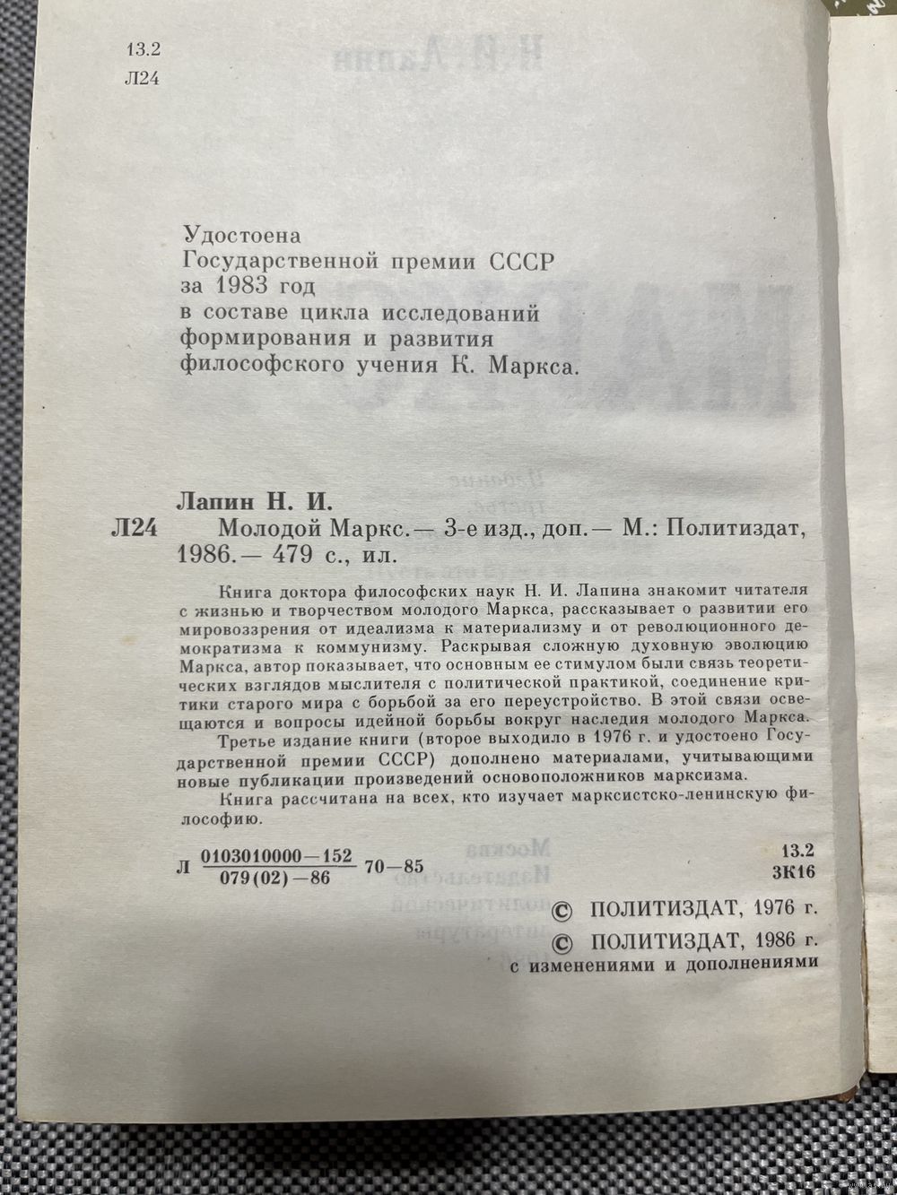 Н.И. Лапин. Молодой Маркс, 1986 г.