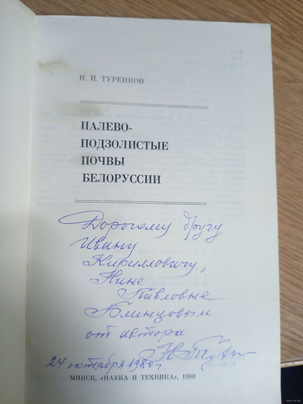Н.И.Туренков"Палевоподзолистые почвы Белоруссии\0 Автограф автора