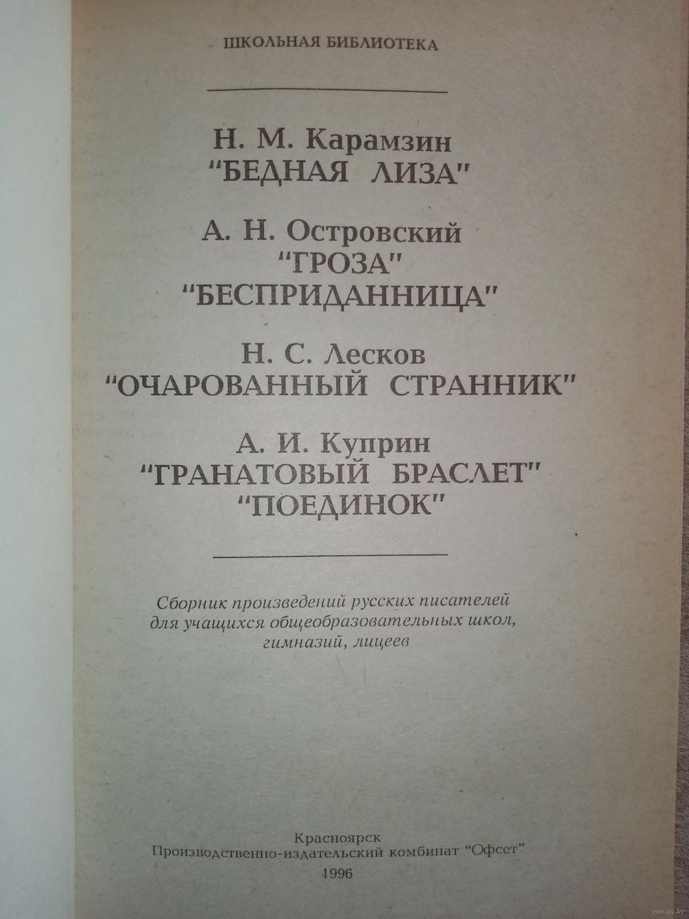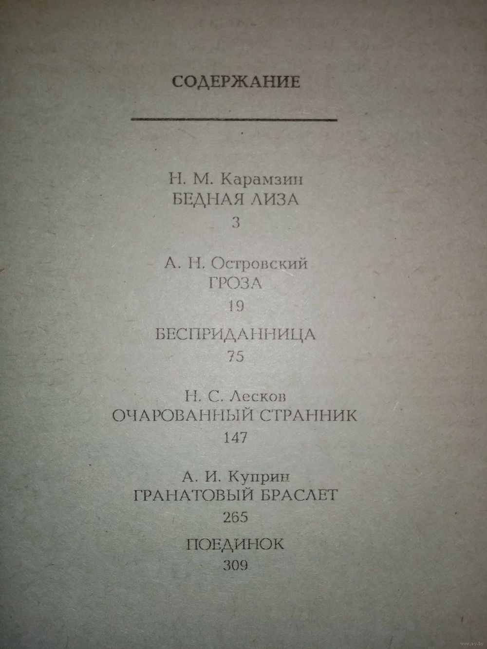 | Автор | Н. Карамзин, А. Островский, Н. Лесков, А. Куприн. |