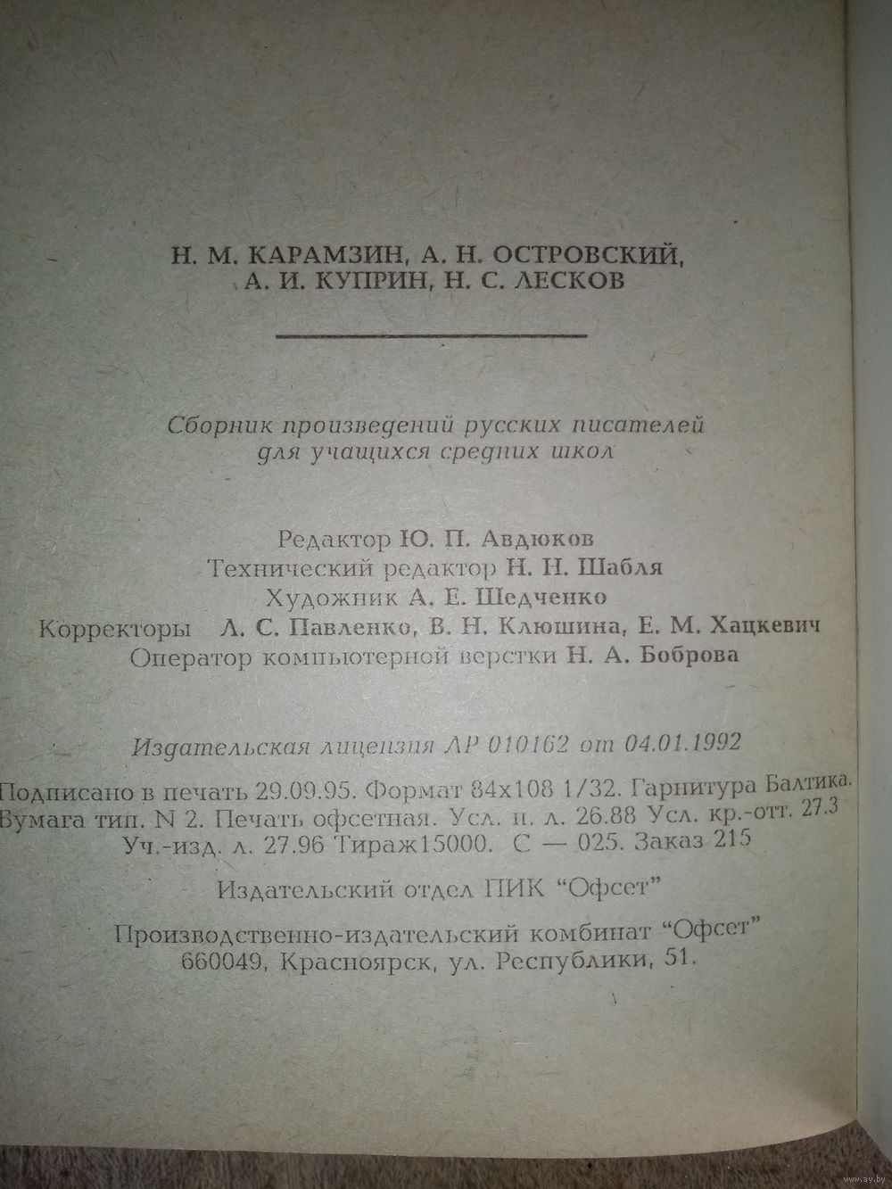 | Издательство | Красноярск, Офсет |