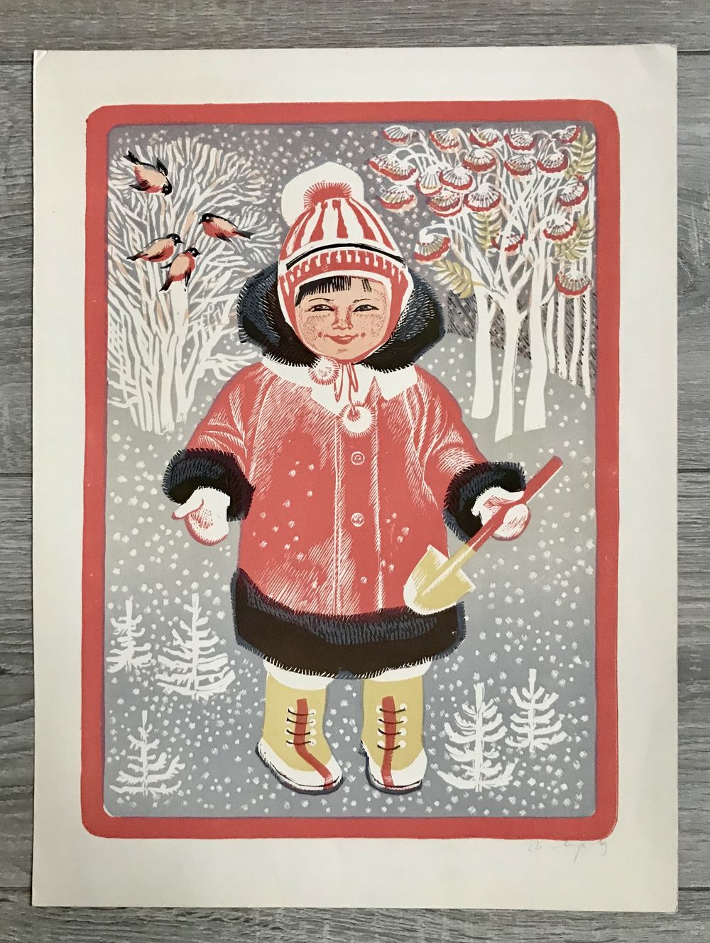 Линогравюра «Наша Маша» автор Н.И.Лопухова, украинский график, народный художник Украины. Размер листа 30х40см., 1984г. Состояние хорошее.