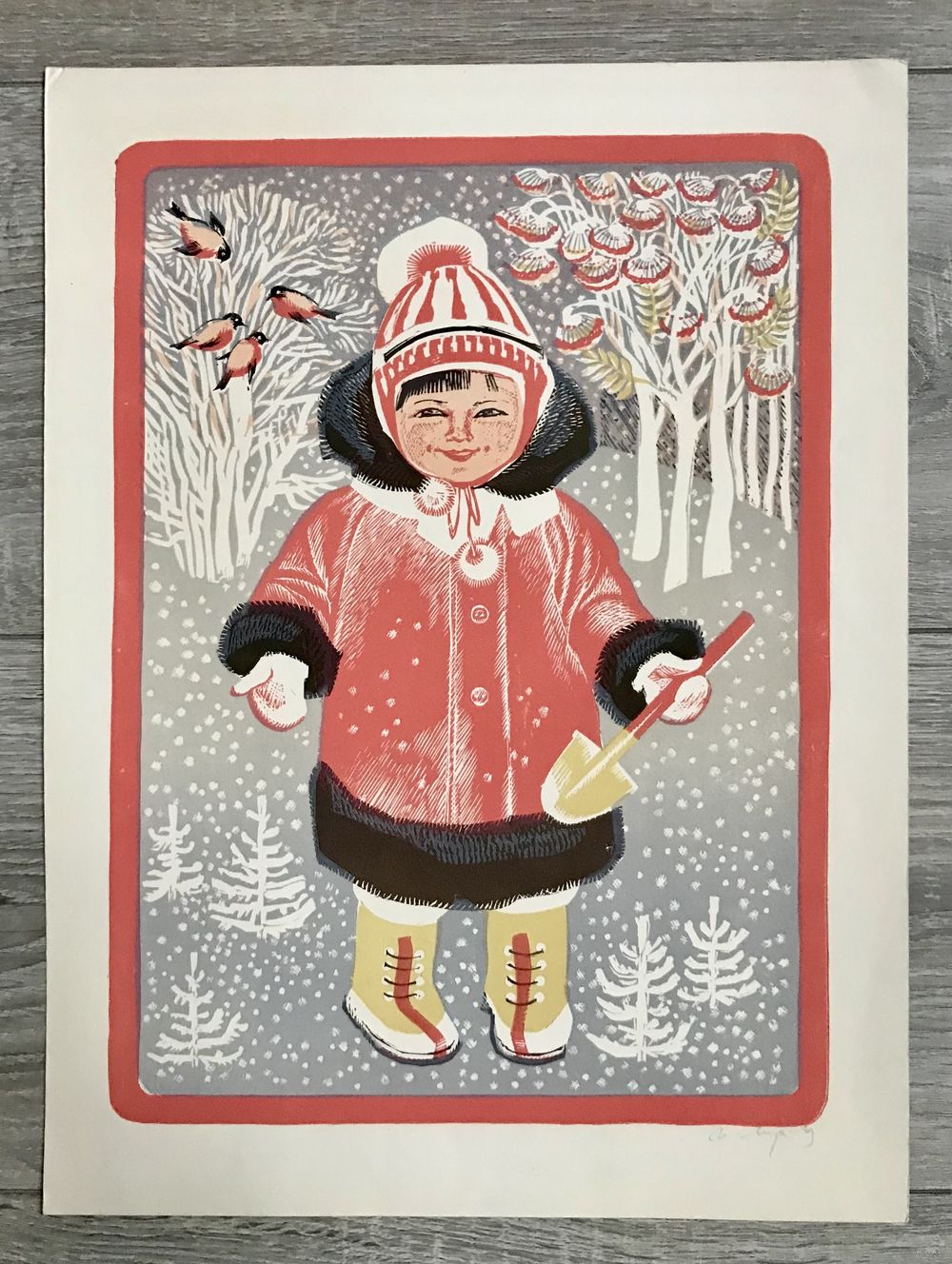 Линогравюра «Наша Маша» автор Н.И.Лопухова, украинский график, народный художник Украины. Размер листа 30х40см., 1984г. Состояние хорошее.