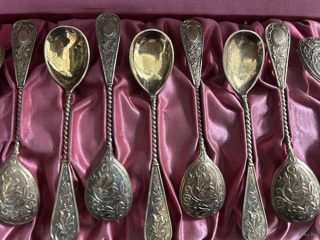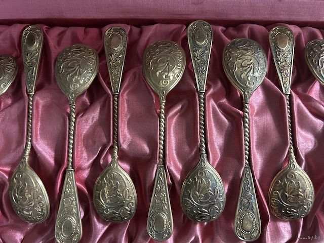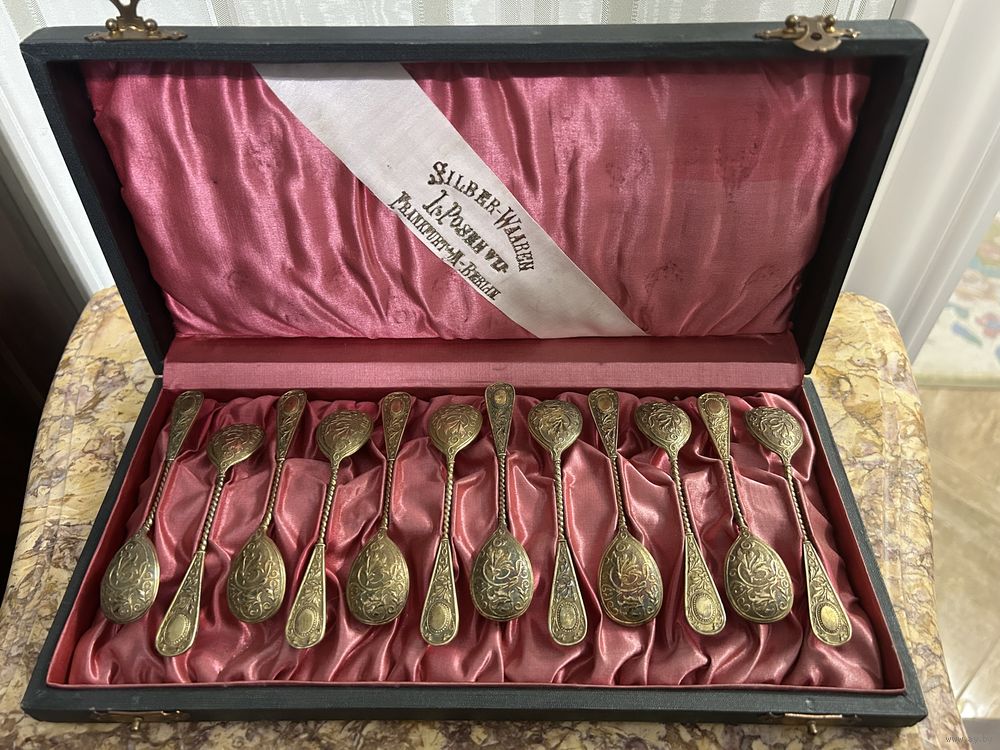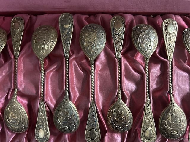 н-р 12 кофейных ложек в родной коробке позолота 800 проба 113 грамм
