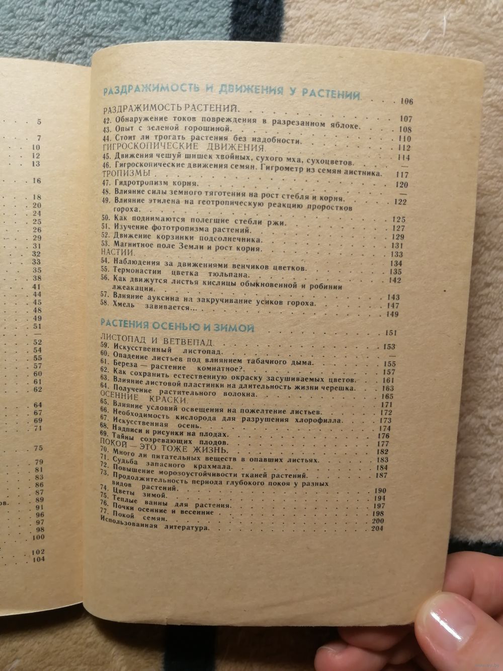 Почему лепестки ромашки белые, а первые весенние листочки тополя красноватые? Как приготовить краску из цветков василька? Почему растения плохо растут на зеленом свету? Различают ли проростки стороны света? Почему табачный дым "убивает" листья? Как сделать косынку из крапивы? Почему кленовый сок сладкий? Можно ли заставить сирень зацвести в декабре?