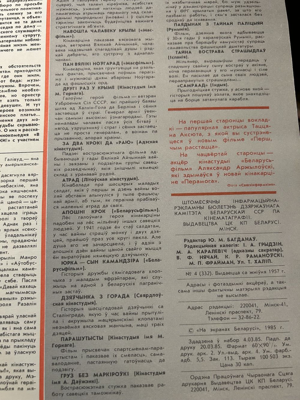 На экранах Беларуси 1985 г вып 4 Аксюта Алферова Старыгин Савина Ефремов Аринбасарова Ю Антонов Т Васильева