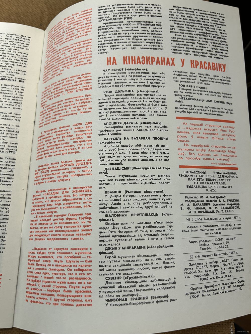На экранах Беларуси 1987 г вып 3 Абдулов Русланова Феллини Меньшов Старыгин Любшин Ек Васильева Вельяминов Пельтцер Удовиченко Карачаевцев