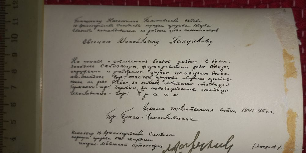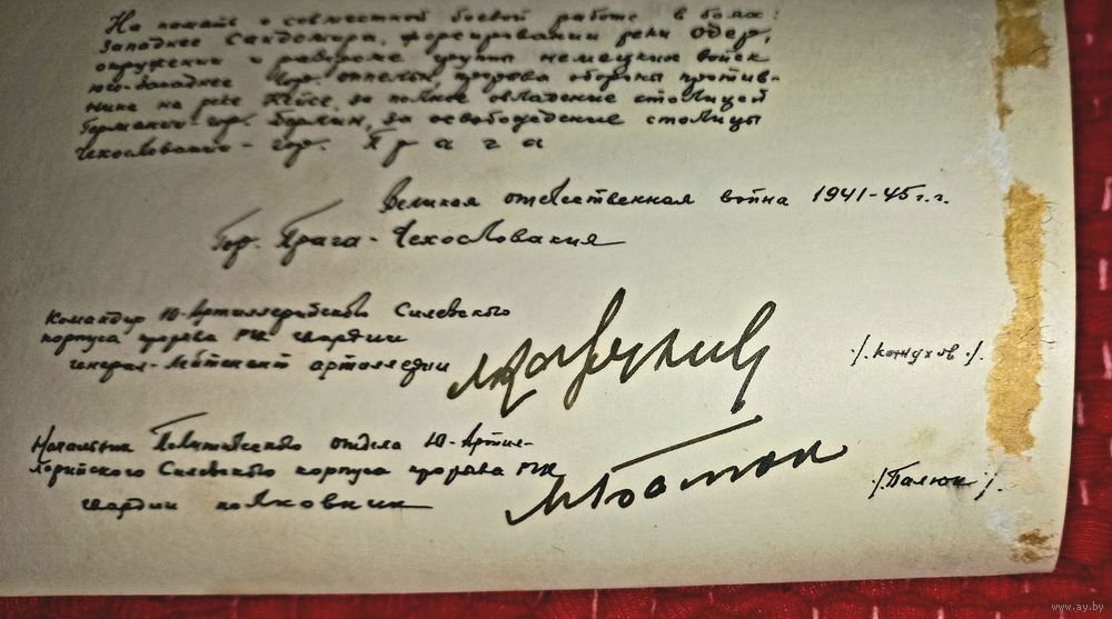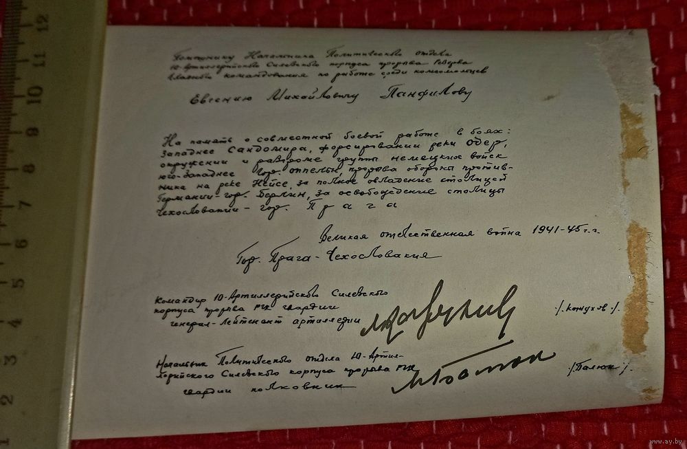 На память о ВОВ фото Прага 1945 подпись генералов командиров 10 корпуса прорыва ген Кожуков (F)