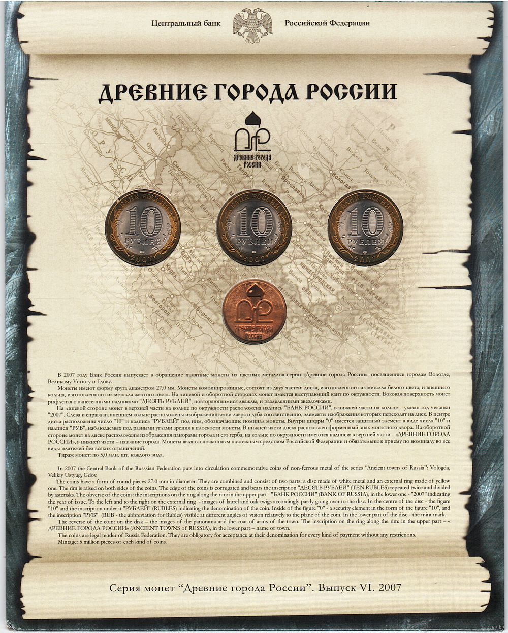 | 3 монеты (Гдов; Великий Устюг; Вологда) + жетон | |