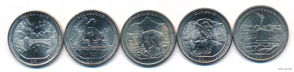 Набор 25 центов 2011 г. Парки 6-10 (5 шт.) Двор Р _UNC
