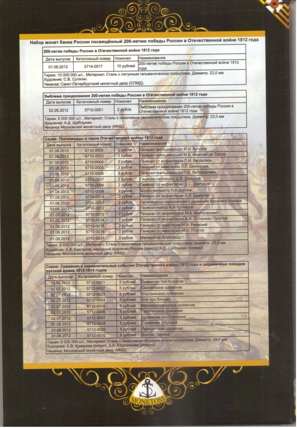 Набор 28 монет 200 лет Победы в войне 1812 г. в блистерном альбоме Коллекционный альбом монет банка России (28 шт.) _состояние мешковой UNC