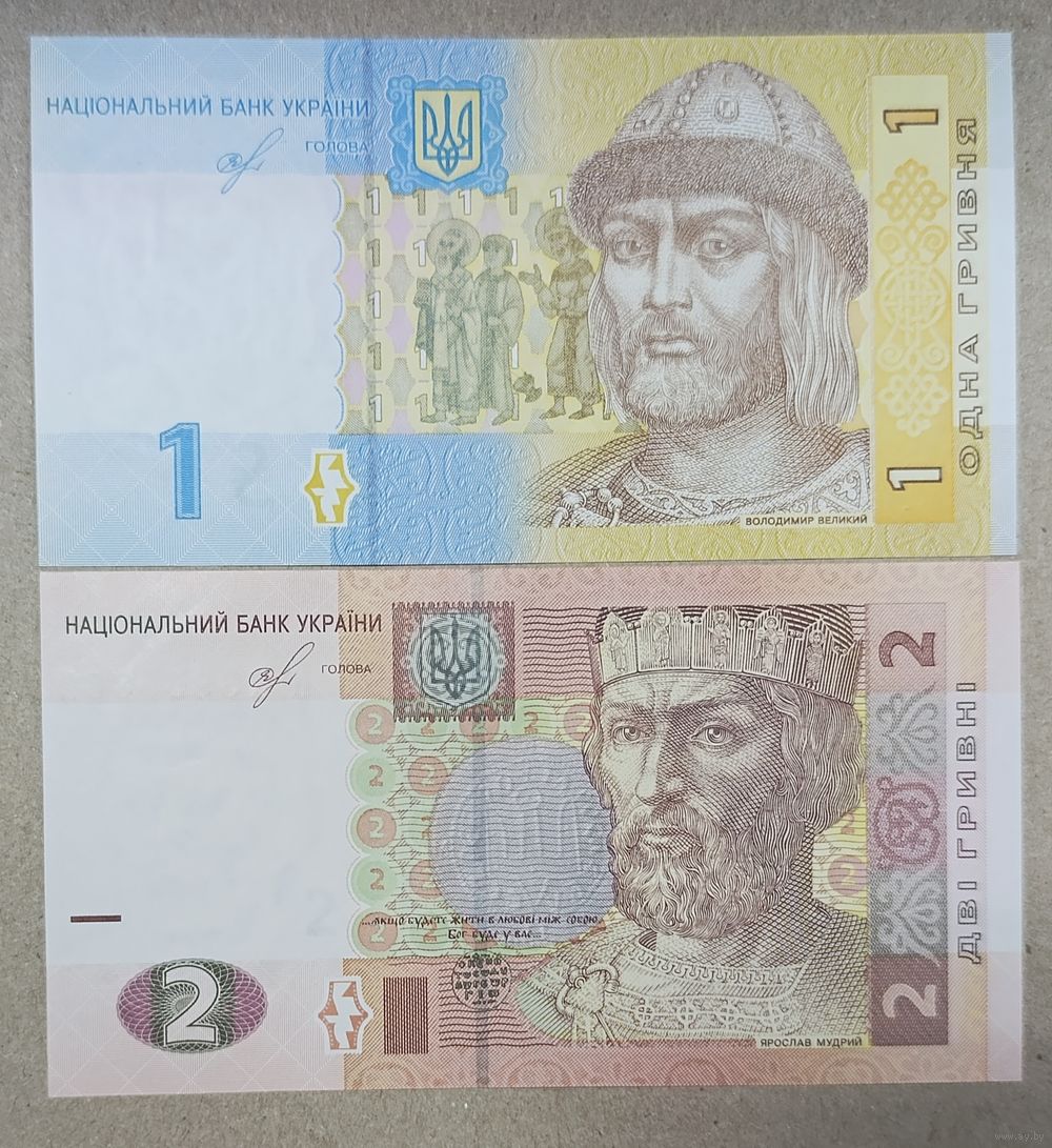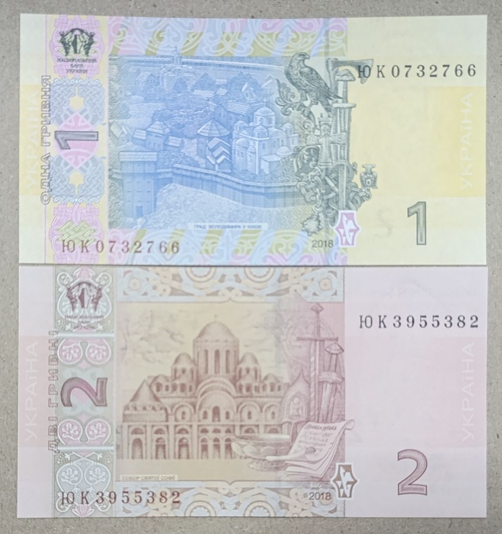 Набор банкнот 1 и 2 гривны 2018 года (Смолий) - Украина - UNC