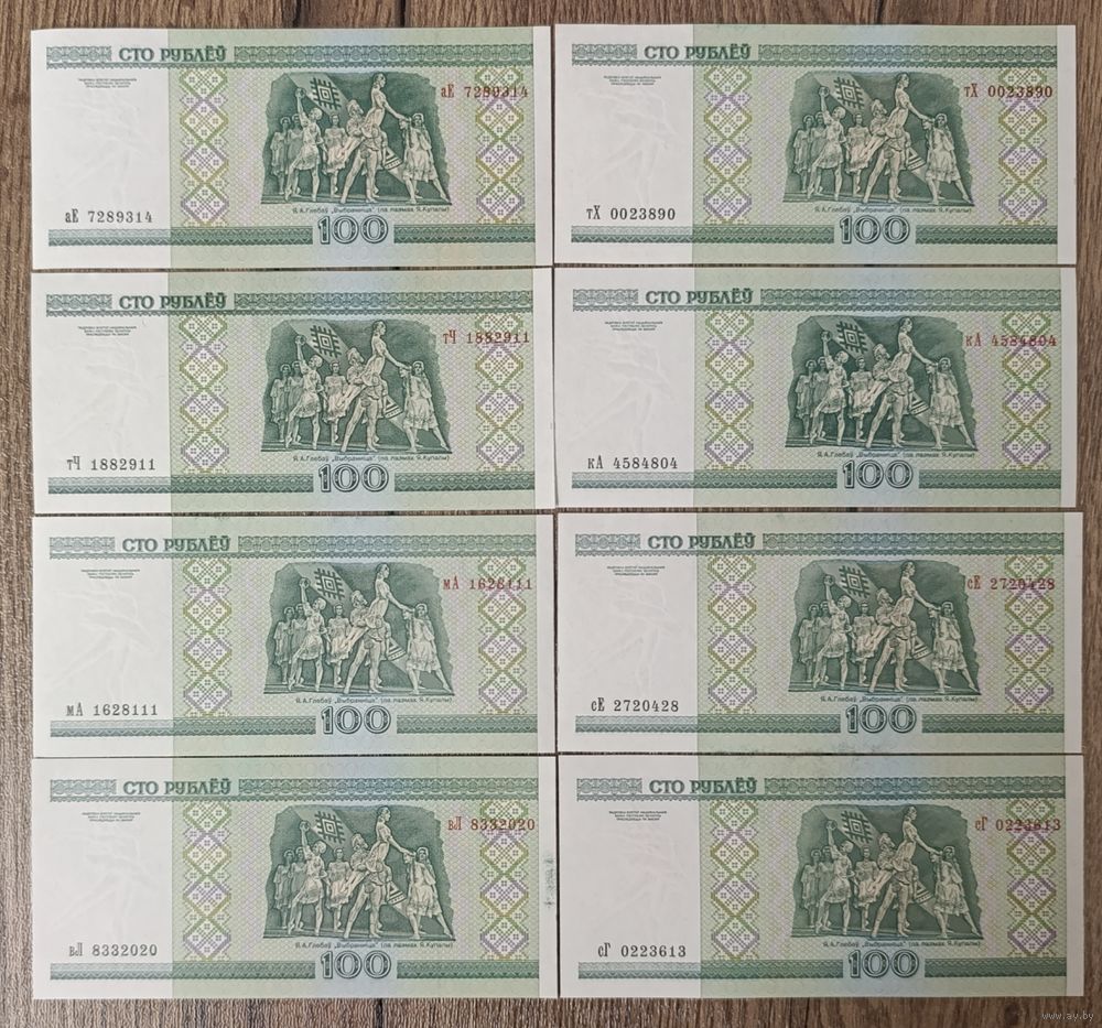 Набор банкнот 100 рублей 2000 года,серии аЕ,тЧ,мА,вЛ,тХ,кА,сЕ,сГ,вЭ,яП,нС,нТ,гГ - 13 шт - UNC