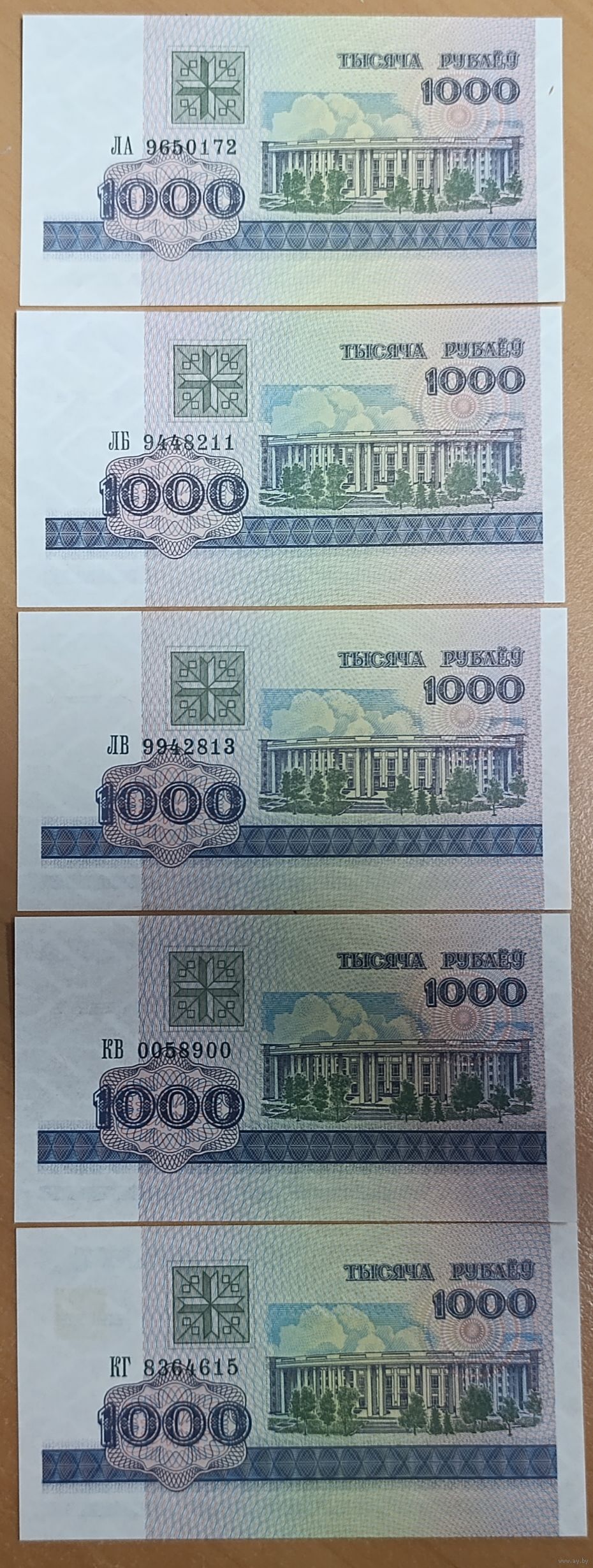 Набор банкнот 1000 рублей 1998 года, серии - ЛА,ЛБ,ЛВ,КВ,КГ - UNC