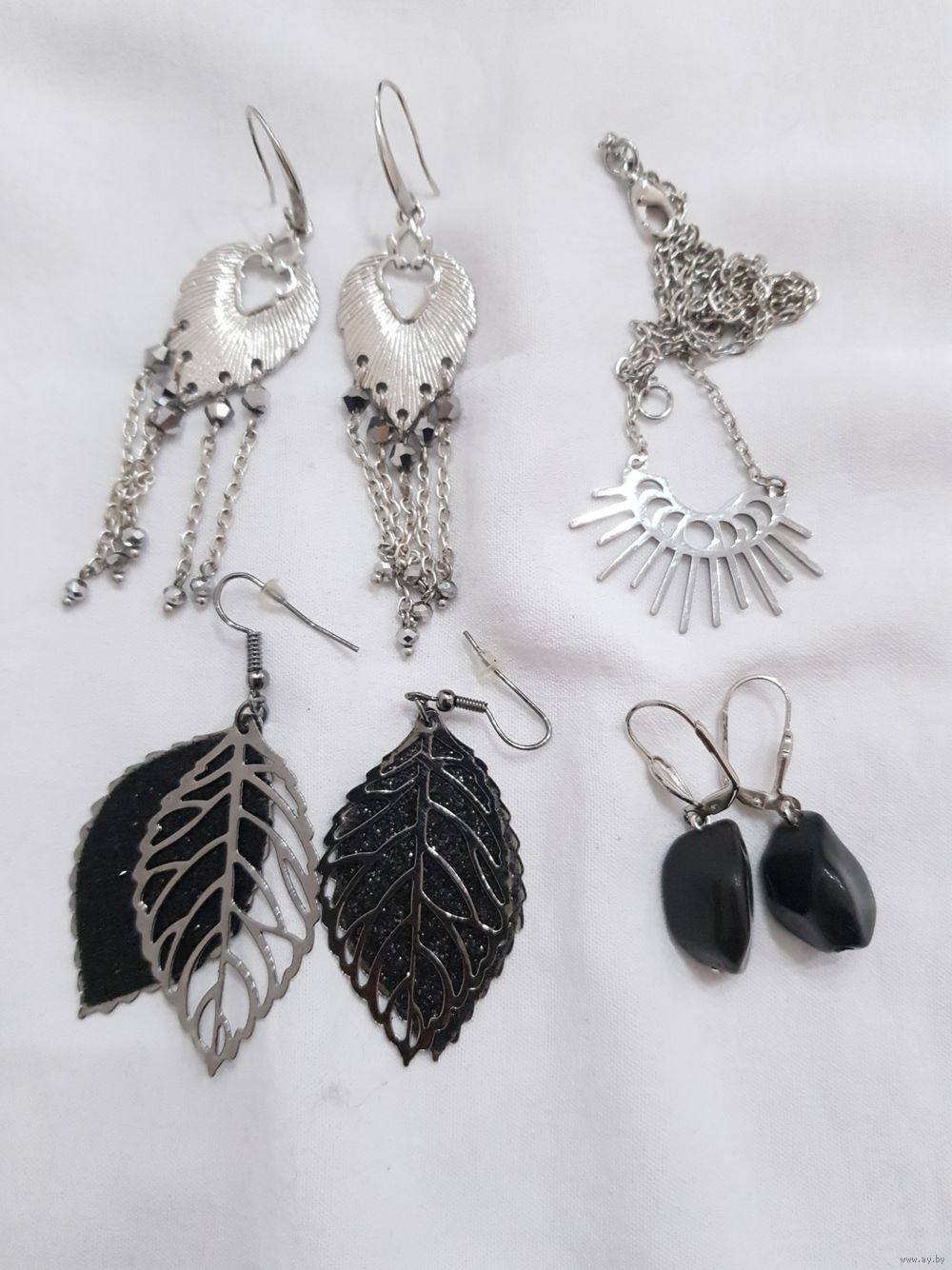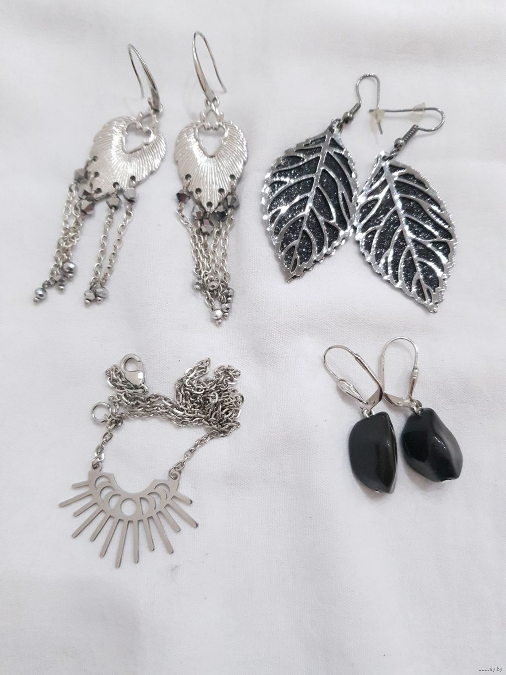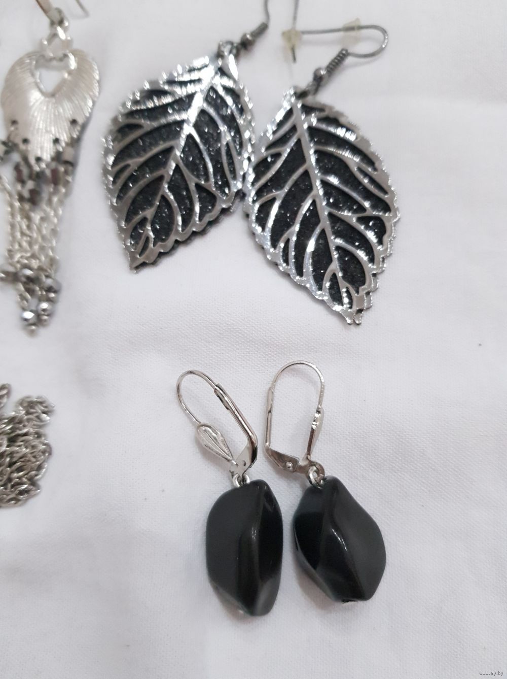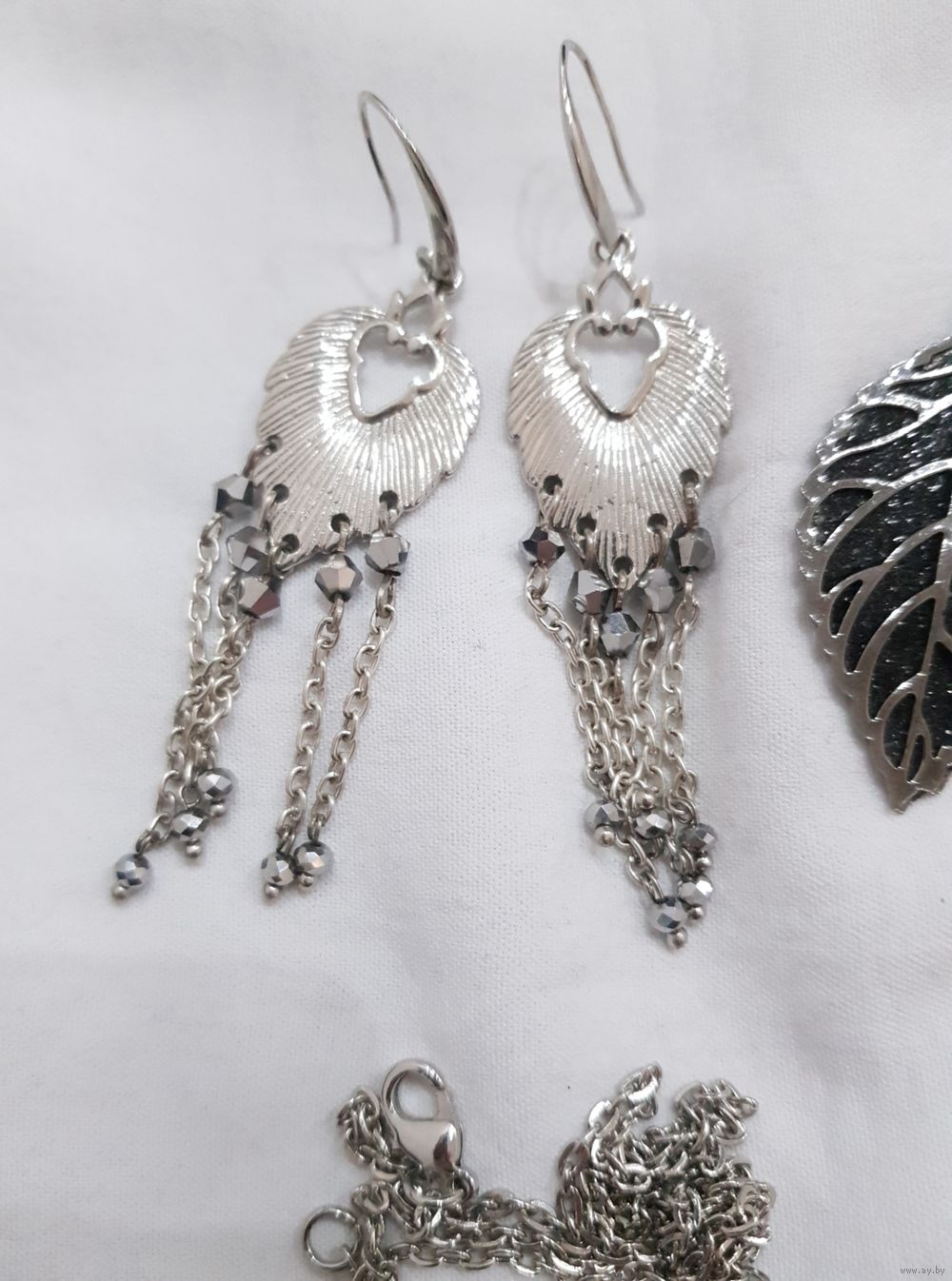 Серьги с кристаллами Сваровски, стальной кулон фазы луны, серьги листики с глиттером, серьги черные натуральный агат.