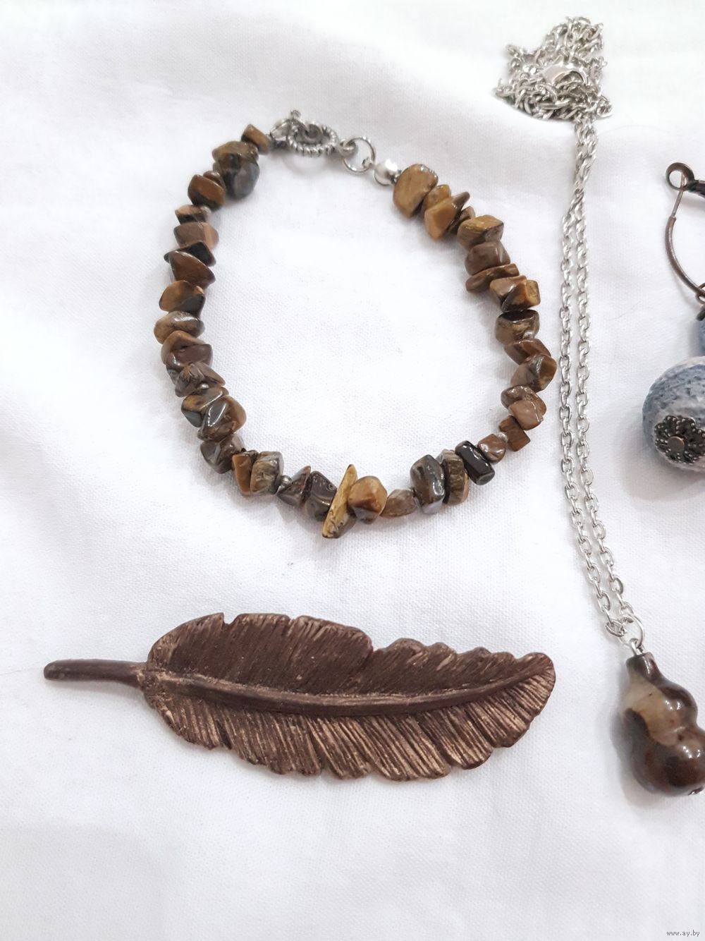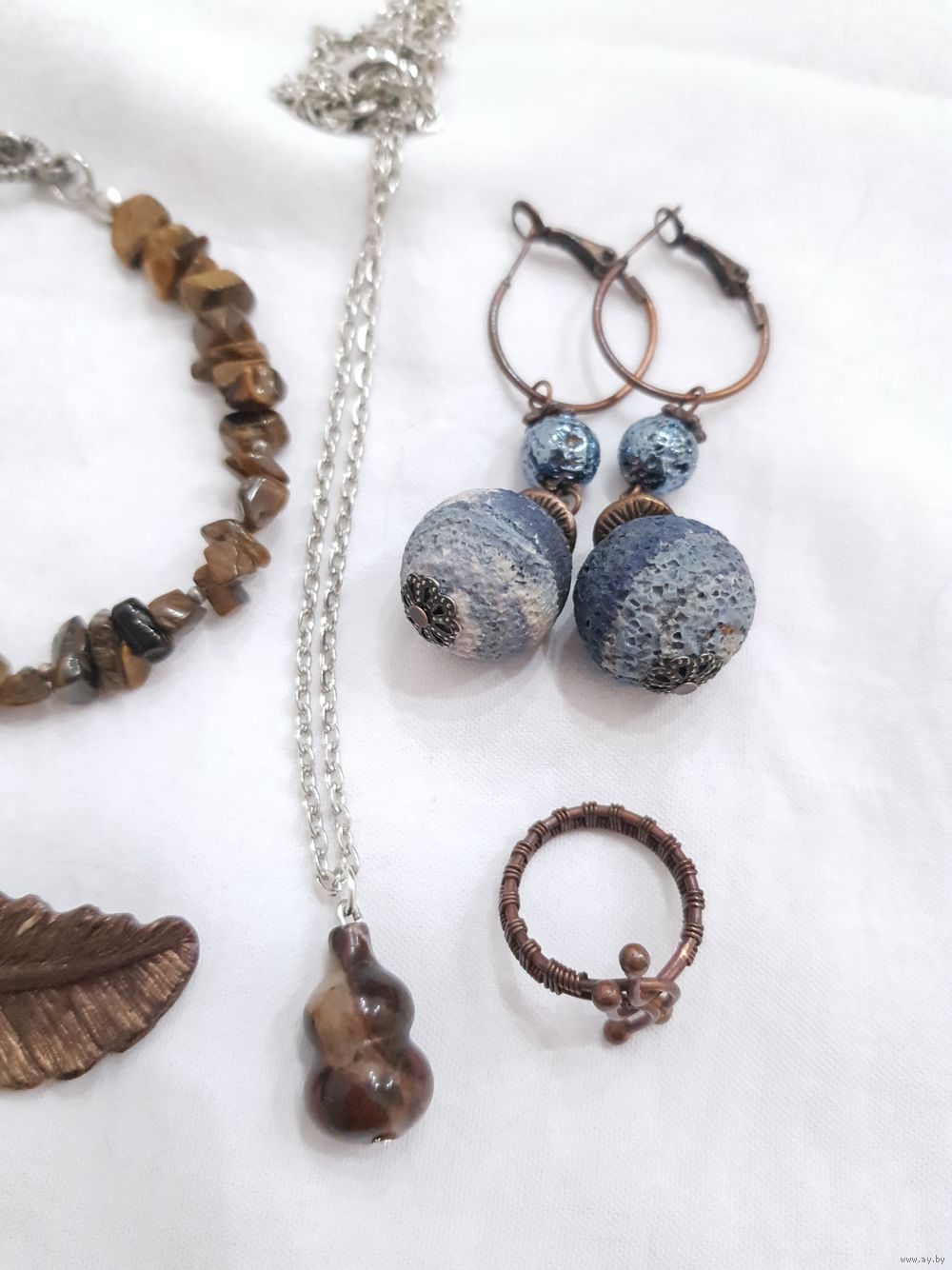 Кулон Тыква Ву Лу - Халцедон, браслет из тигрового глаза, кольцо медь р. 16, серьги медь, полимерная глина ручной работы.