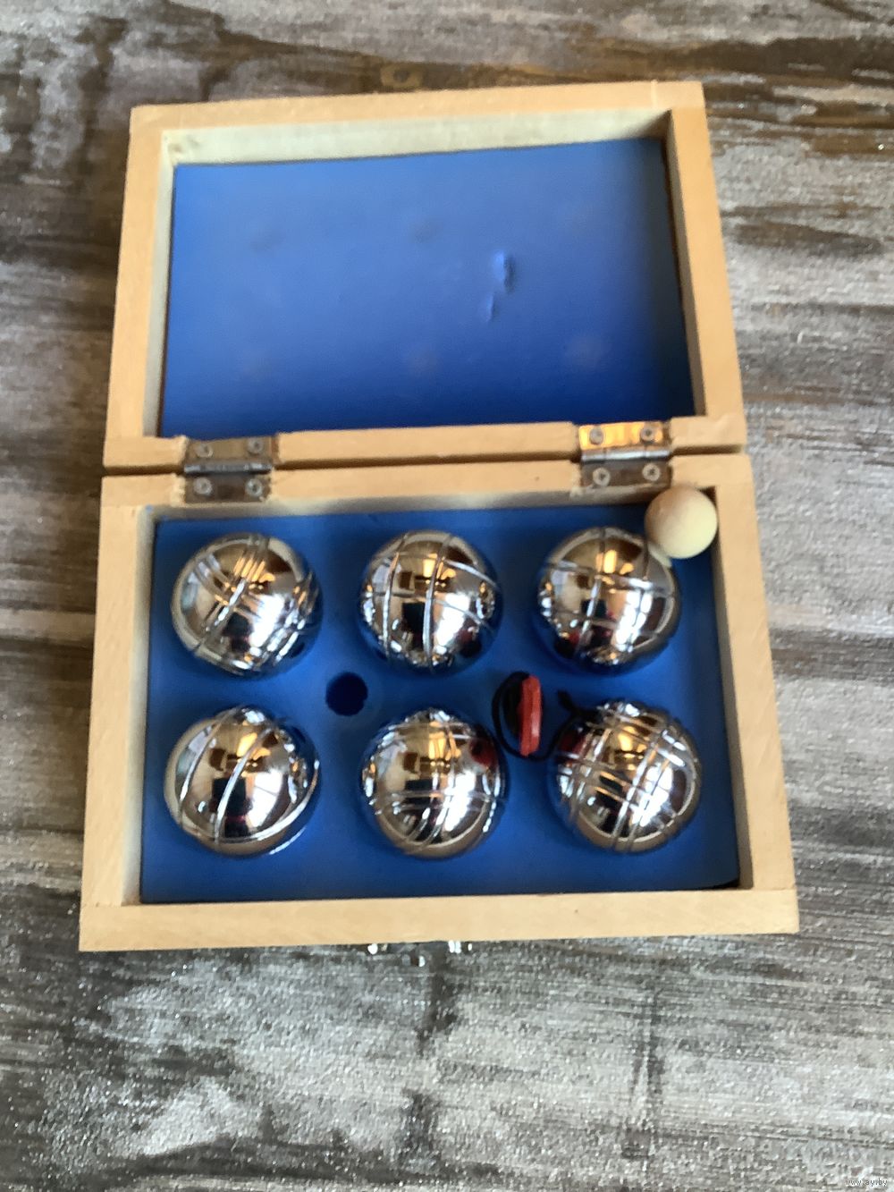Набор включает 6 металлических шаров и 1 деревянный шарик-цель.