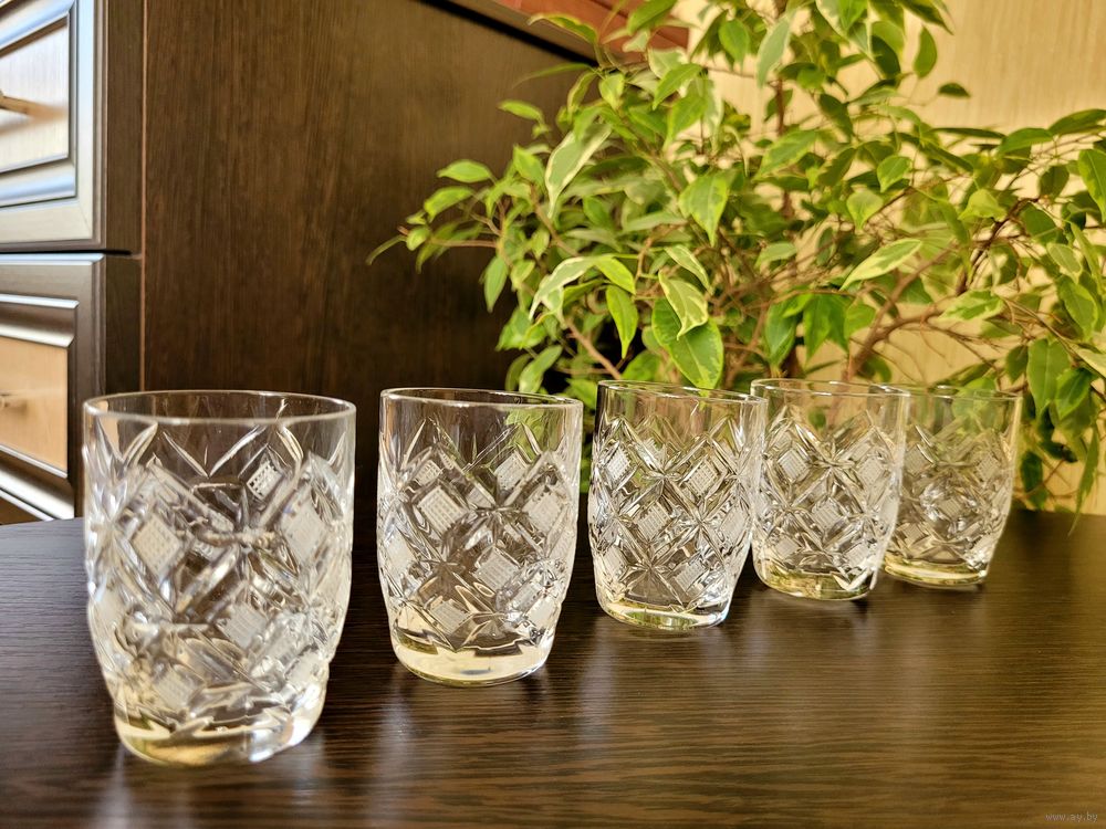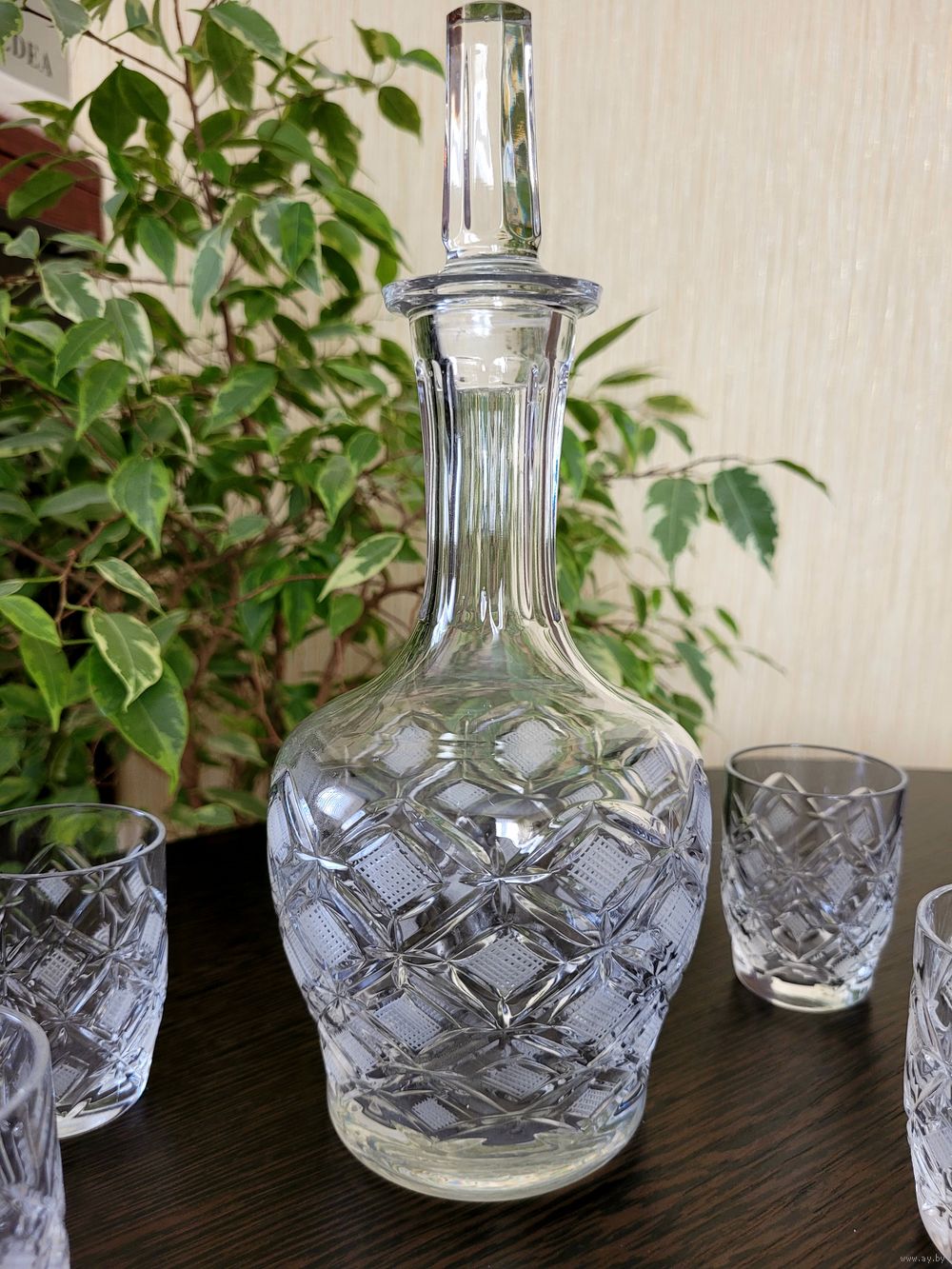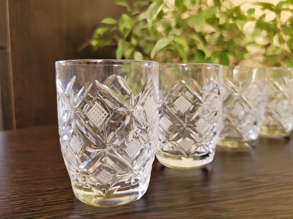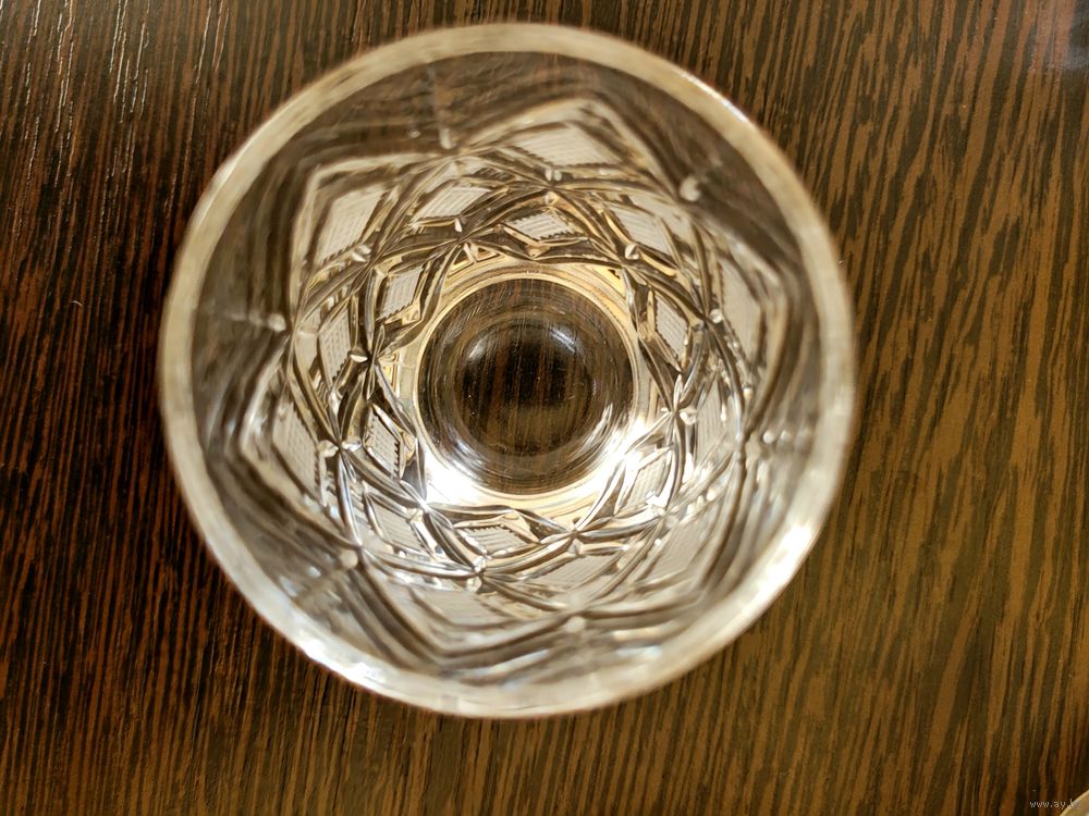 Набор для крепких напитков. Графин, высота 25 см с пробкой, стопки 75 мл, размер 7×5 см, 5 шт. Хрусталь СССР, алмазная грань - ромбы.