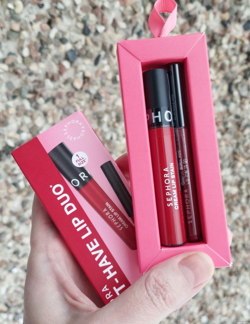 Набор для макияжа губ: полноразмерная жидкая стойкая матовая помада Sephora Cream Lip Stain 5 ml в оттенке 01 Always Red и миниверсия карандаша для губ Sephora Lip Liner To Go 0.73 gr в оттенке 04 Deep ruby