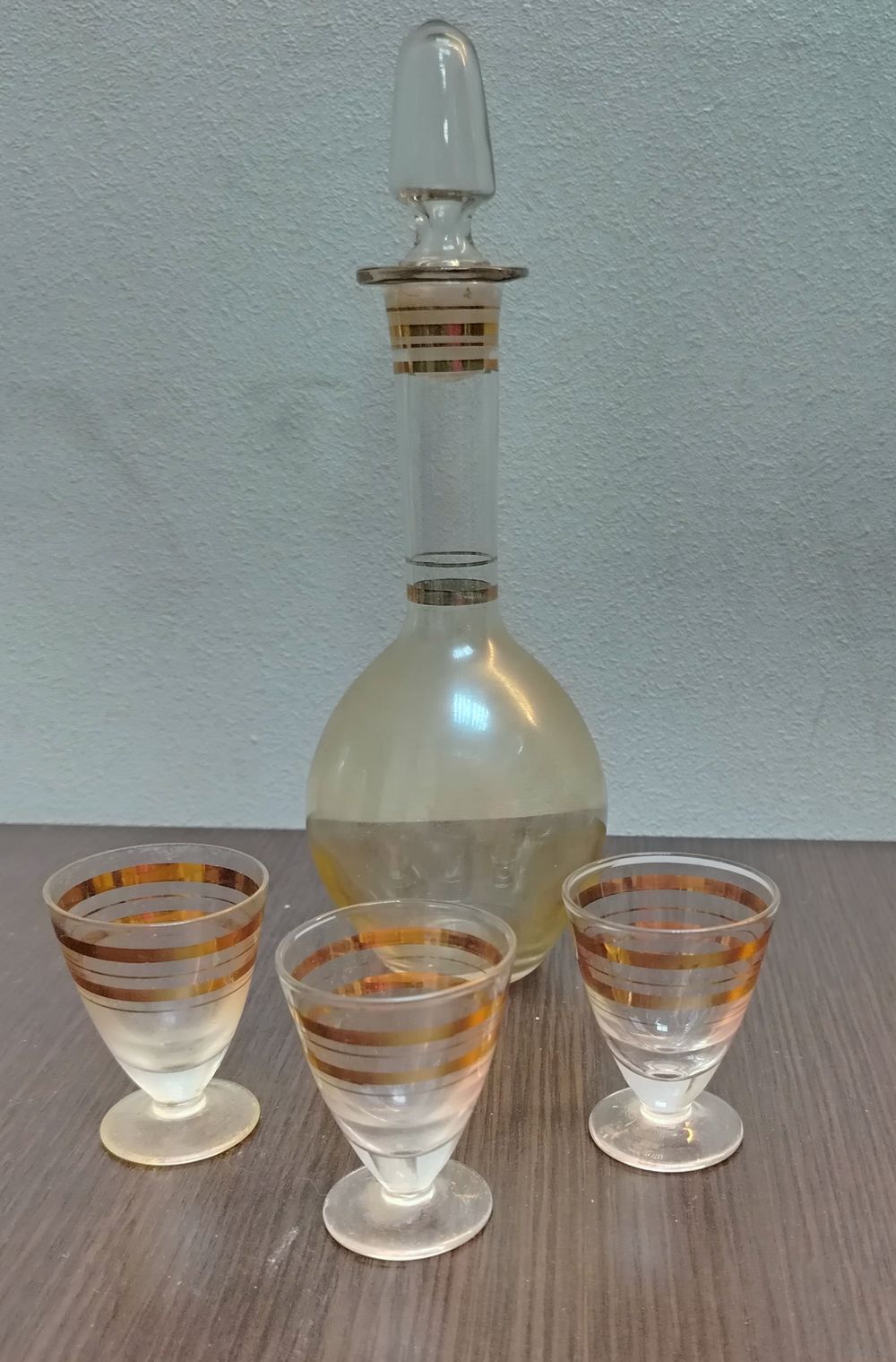 Набор для напитков графин и три рюмки . хороший набор из тонкого стекла с позолотой