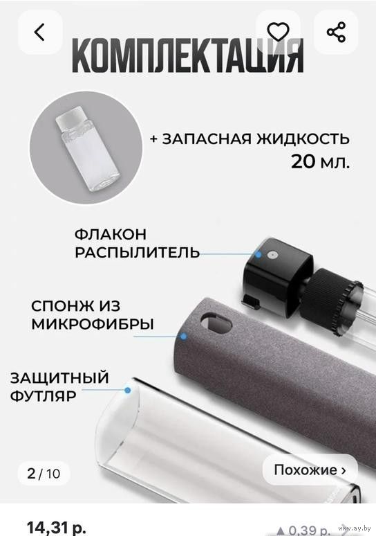 Продаётся набор для очистки экранов спрей с микрофиброй и жидкость. Новый.