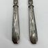 Антикварный набор для перемешивания салата, ложка и вилка с рельефными ручками из посеребренного металла. Франция. Клейма. Длина вилки и ложки 27 см. В оригинальном кейсе со следами времени. Размер кейса 9,5 х 31 х 4 см. На внешней стороне стороне микроскол, на внешний вид и функциональность не влияет.
