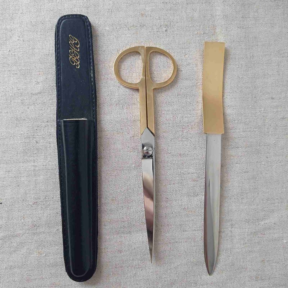 Набор в чехле ножницы и нож для писем.