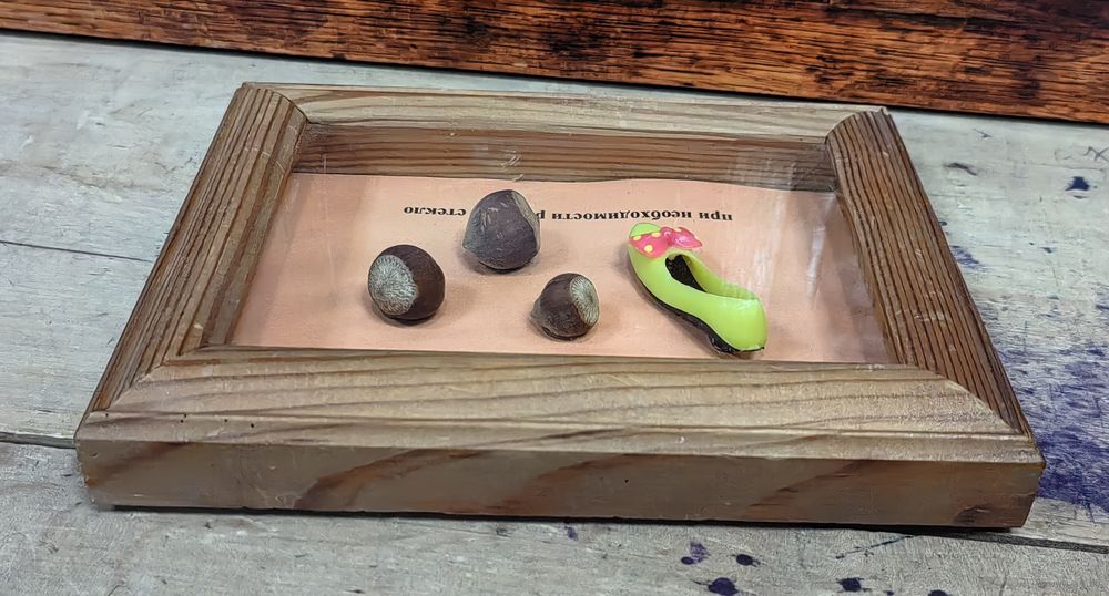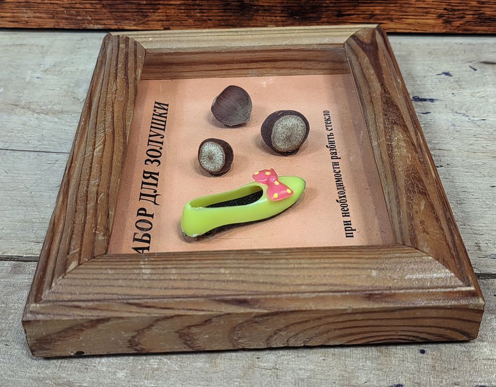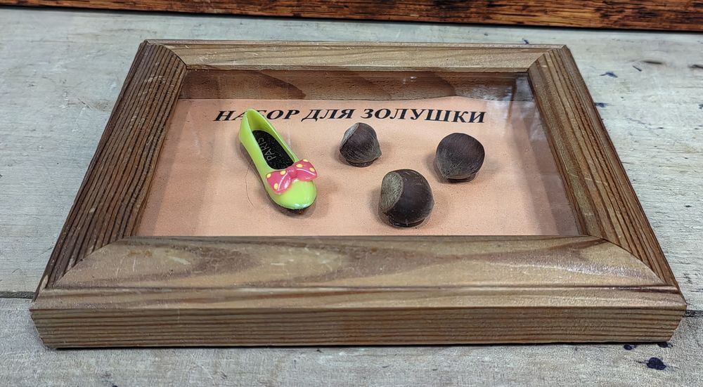 Орехи с туфлей можно достать и разместить медаль под стеклом или небольшую подборку пуговиц или монет, в общем, на что хватает фантазии)