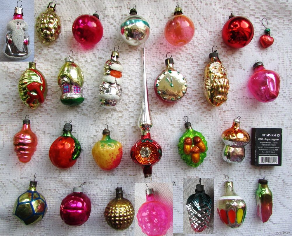 Подборка из 25 игрушек на ёлку около 1 м или ниже. Игрушки не такие крохотные, как мини-сердечко в верхнем правом углу, их высота 6 см, как высота спичечного коробка.