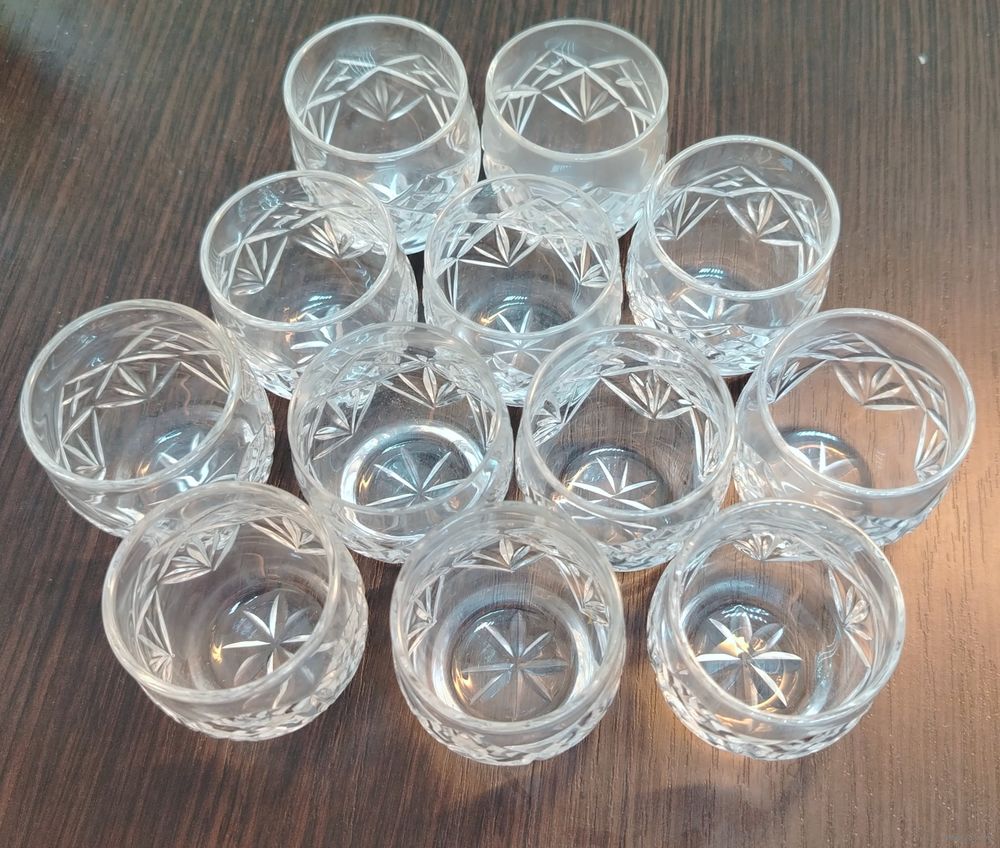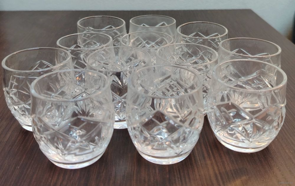 Винтажный набор хрустальных рюмок , в идеальном состоянии без сколов , хорошо подойдет встречать дома за столом большую компанию .