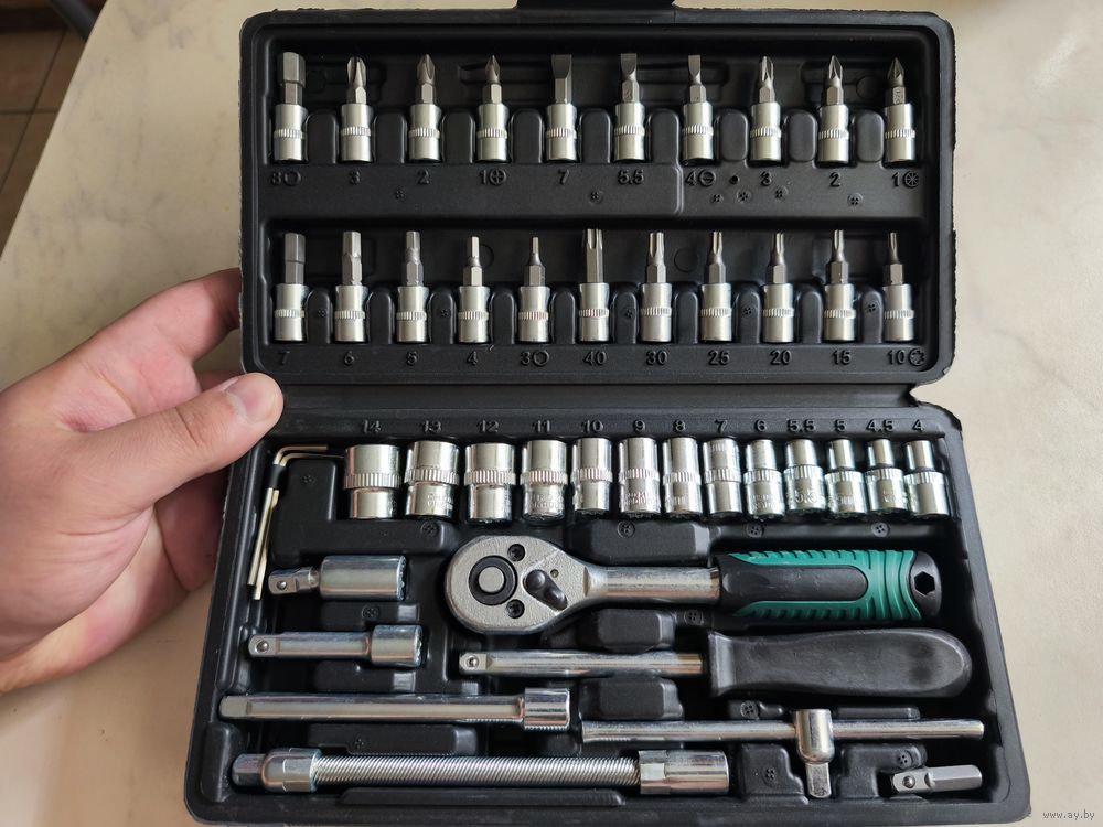 Новый набор инструментов 1/4", 46 предметов, отлично подойдёт для дома, дачи, гаража и машины.