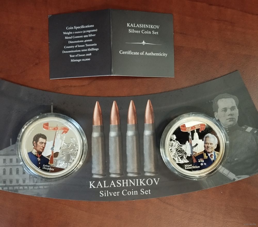 Танзания 1000 шиллингов 2018 г. "Калашников". Набор из 2х монет в подарочной коробке.