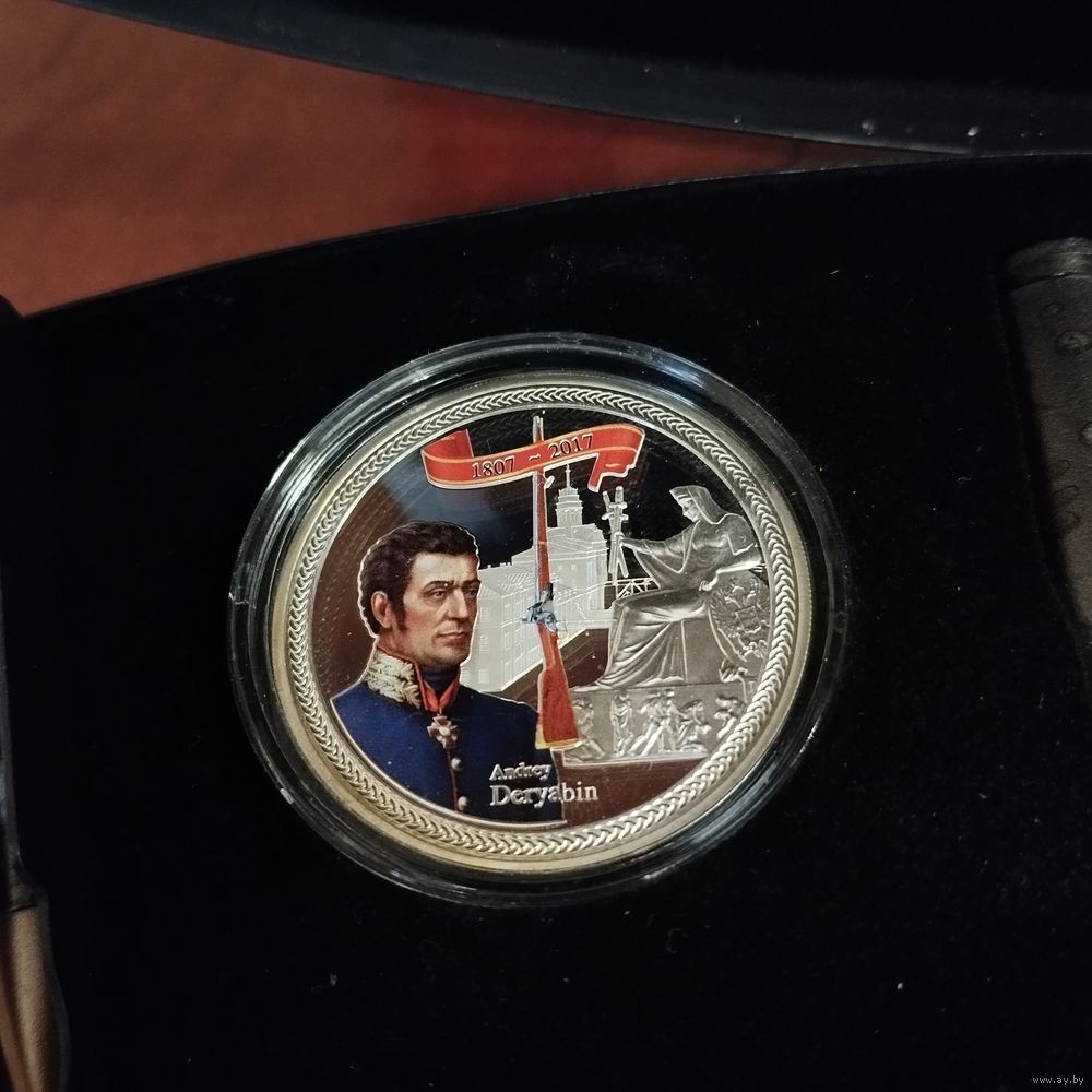 Реверс: в центральной части первой монеты расположены чеканные изображения первого здания Ижевского оружейного завода и барельефа женщины на троне, прикрытым большим боевым щитом, раздающей воинам оружие. Изображение символизирует Россию, вооружающую своих сынов для защиты отечества. Слева расположен цветной портрет Андрея Дерябина. В центральной части - цветное изображение винтовки образца 1808 года. Немного выше расположено цветное изображение ленты с датами 1807-2017.