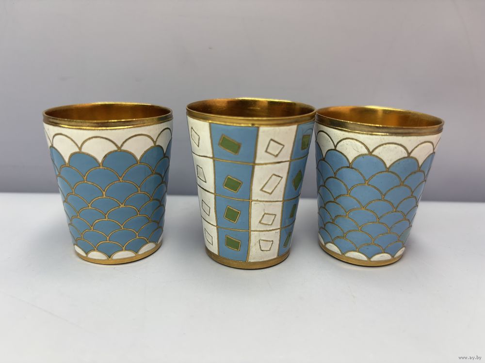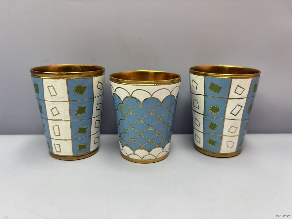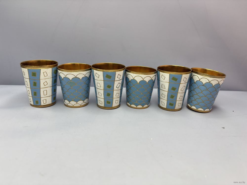 Набор из 6 стопок, эмаль, латунь с золочением, Ленинградская ювелирная фабрика "Русские самоцветы", СССР, 1970-1990 гг.