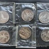 Набор из 6 юбилейных монет номиналом 1 рубль, выпущенный к Олимпиаде-80 в Москве (1977–1980 гг.), является полной серией памятных медно-никелевых монет этого периода. Вариант «в запайках» (герметичная полиэтиленовая упаковка Госбанка СССР) особенно ценится коллекционерами, так как гарантирует сохранность чеканки.